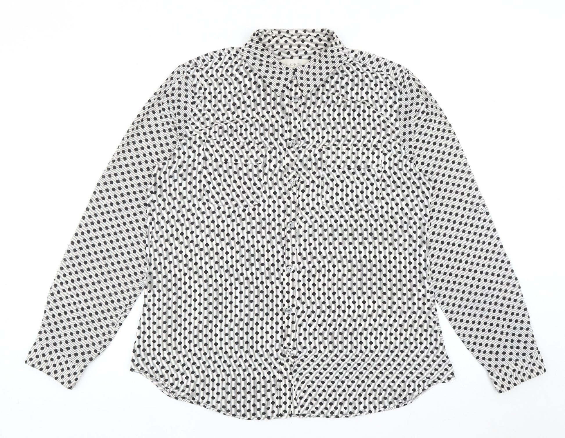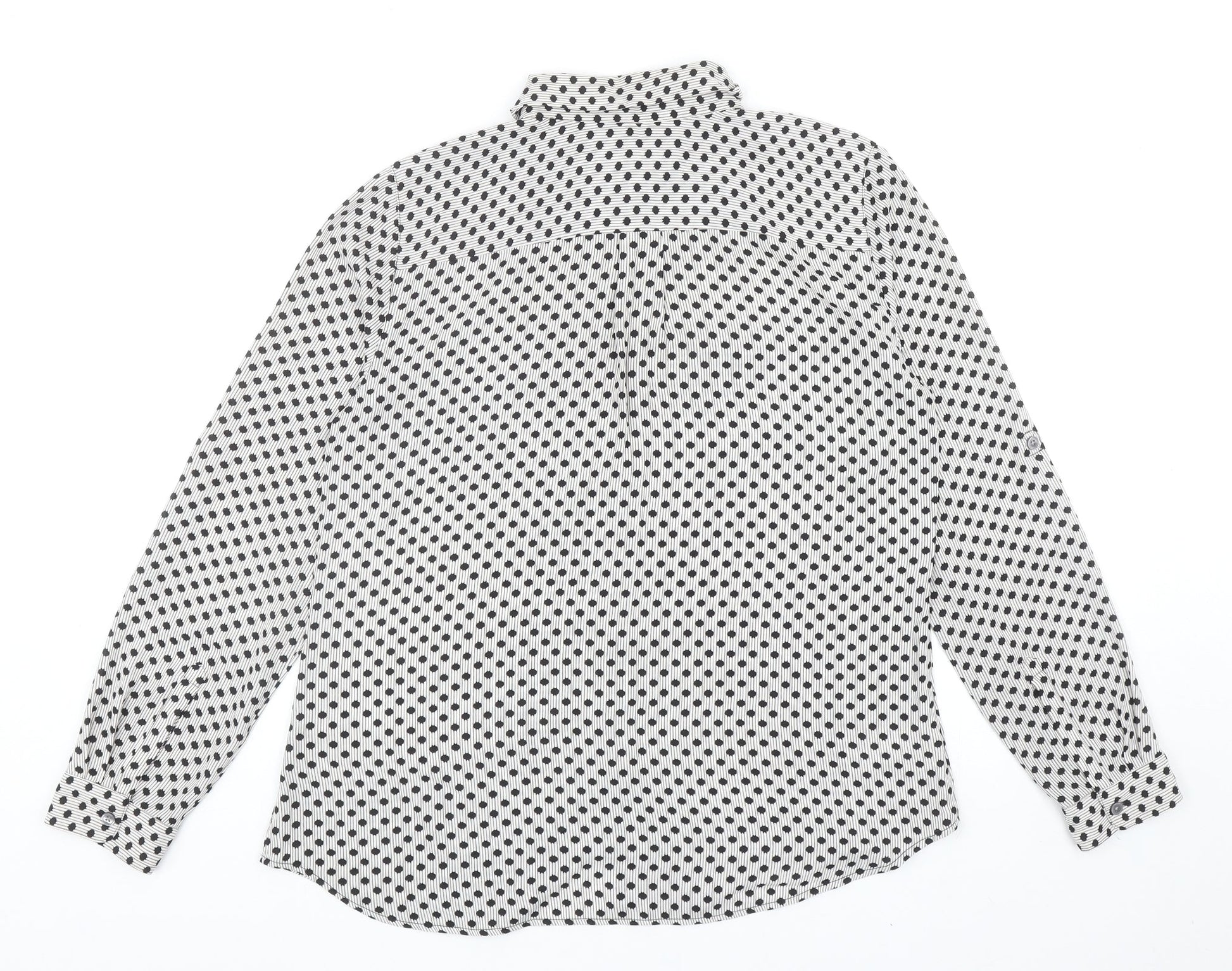 LOFT Womens Black Geometric Polyester Basic Button-Up Size M Collared