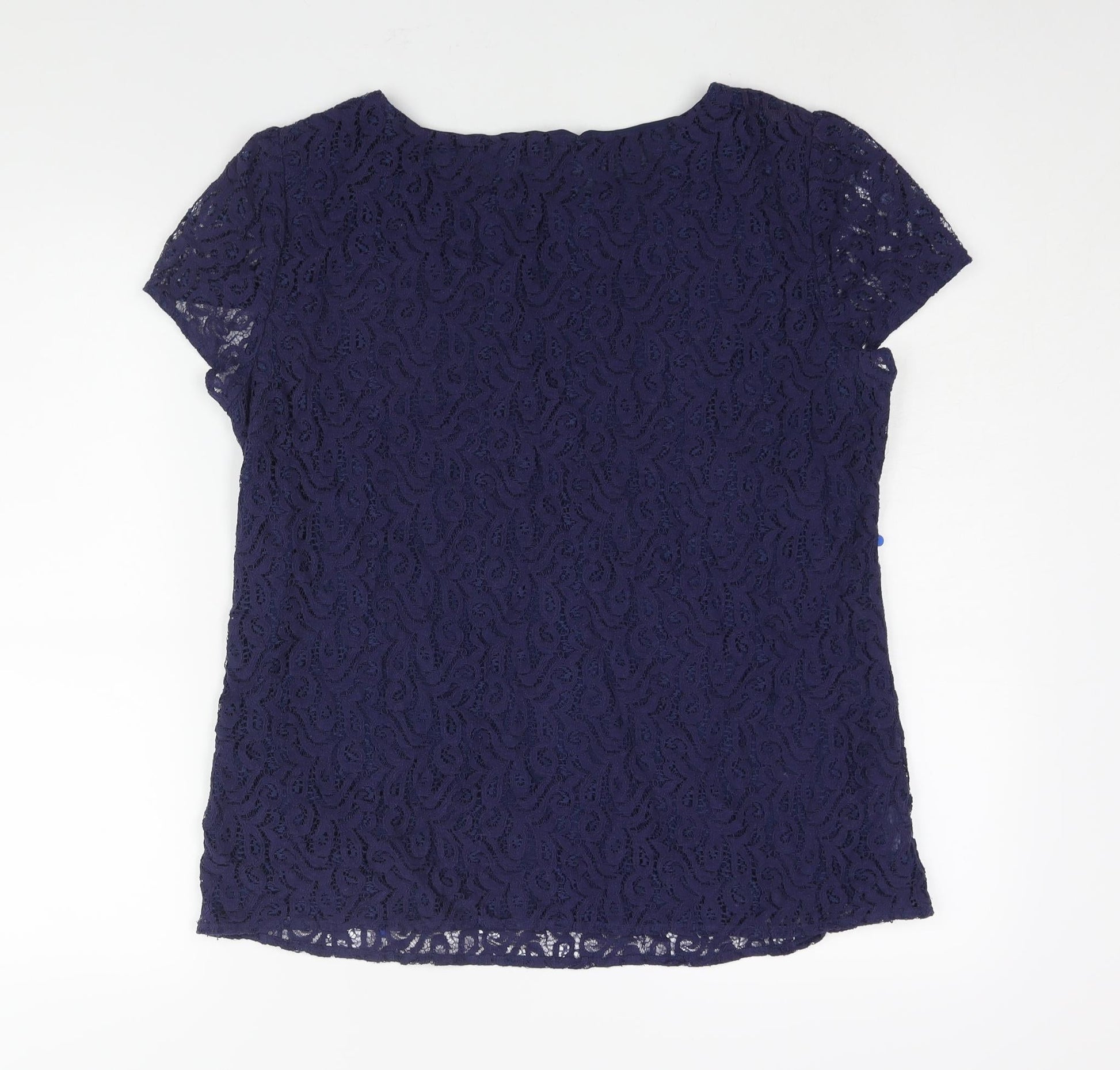 LOFT Womens Blue Nylon Basic Blouse Size M Round Neck - Sequin Detail