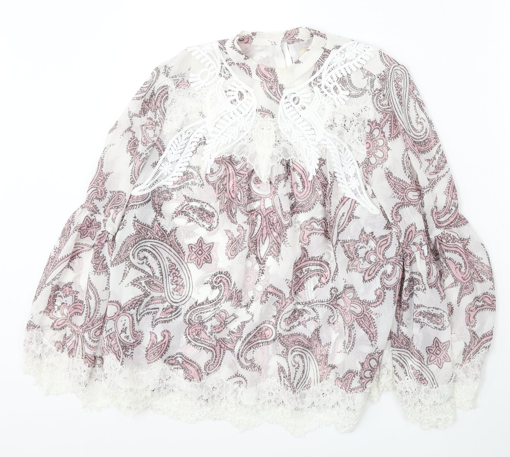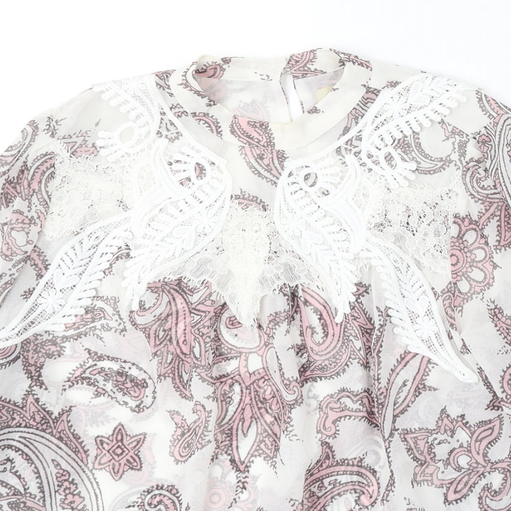 LOFT Womens Multicoloured Geometric Polyester Basic Blouse Size S Round Neck