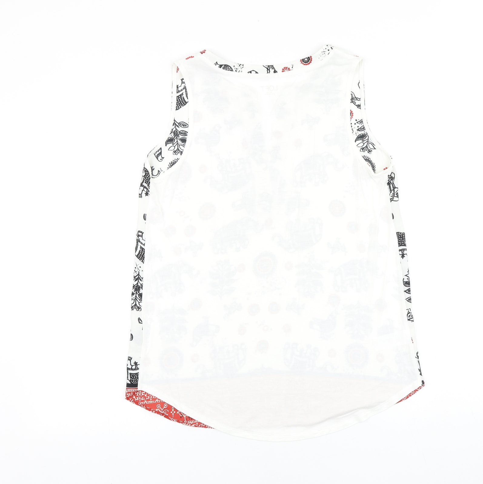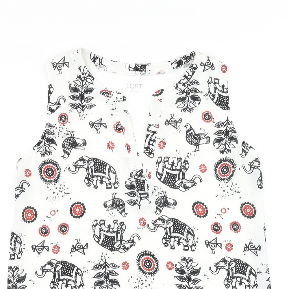 LOFT Womens White Geometric Viscose Basic Tank Size S V-Neck