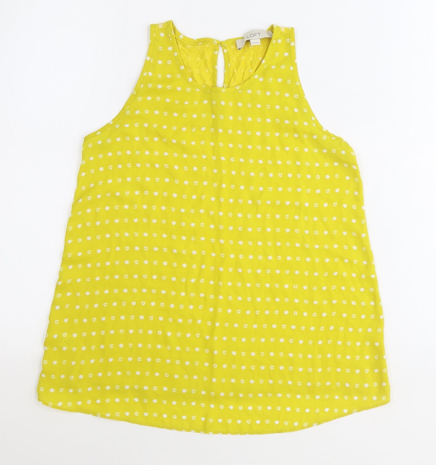LOFT Womens Yellow Geometric Polyester Basic Tank Size 2XS Scoop Neck