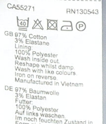- Material Breakdown: 97% Cotton 3% Elastane