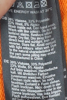 - Material Breakdown: 39% Viscose 33% Polyamide 23% Wool 5% Alpaca