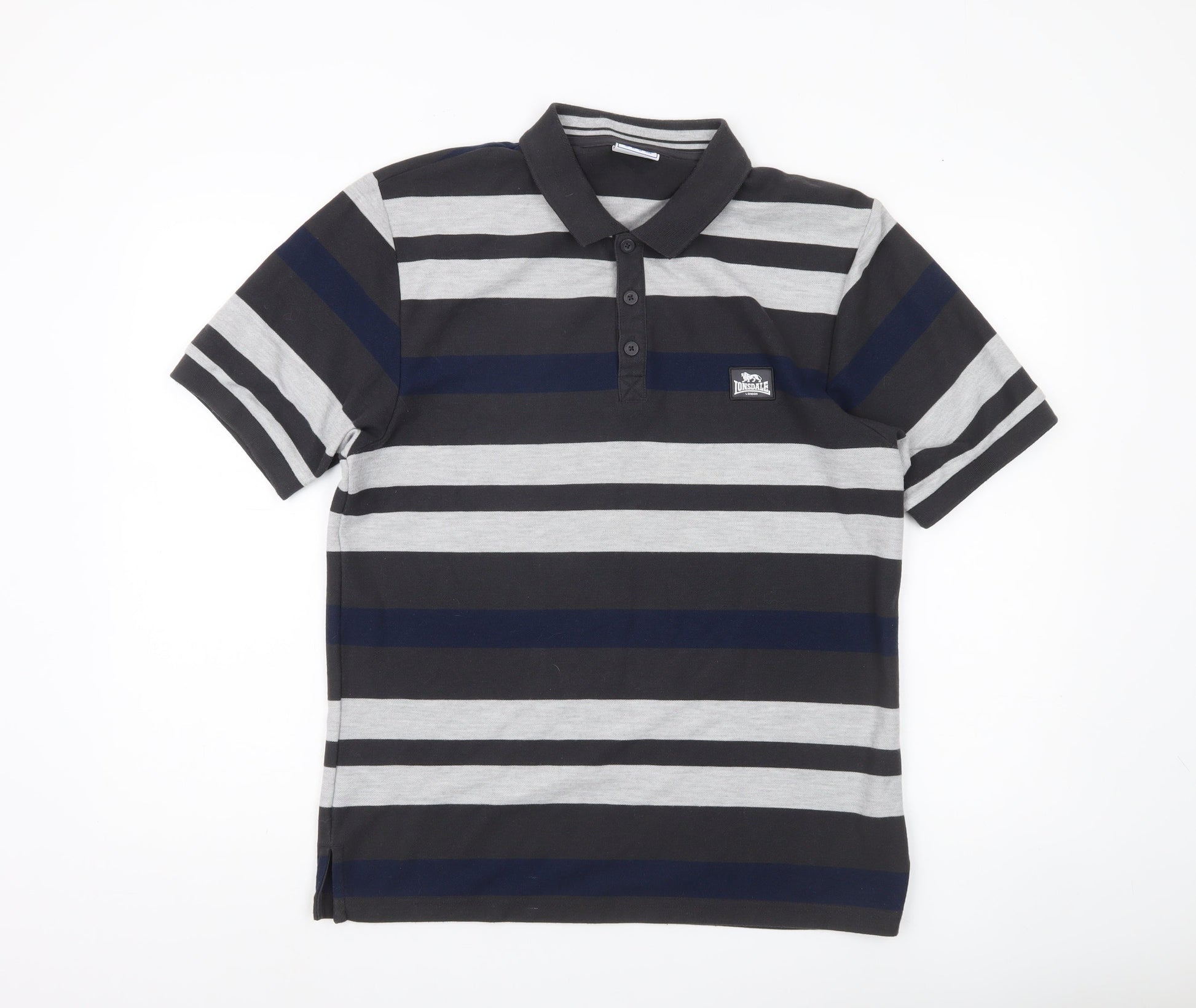 Lonsdale Men’s Black Grey Blue Striped Polo Shirt M Regular Fit