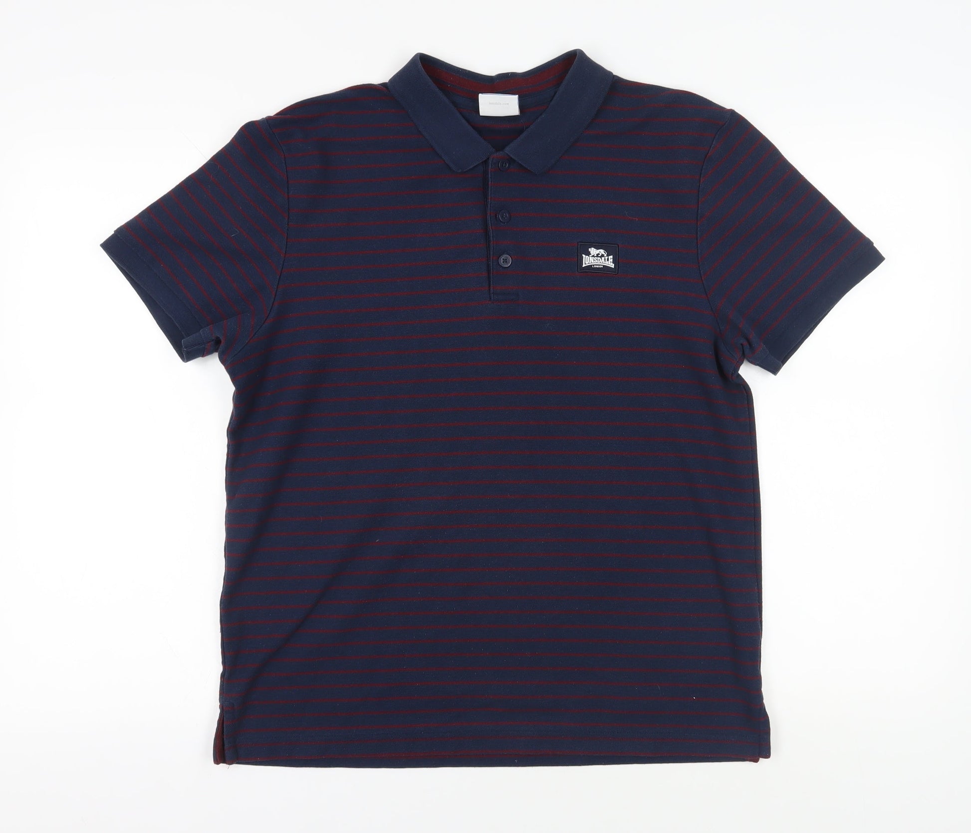 Lonsdale Men's Blue Striped Polo Shirt XL Short Sleeve