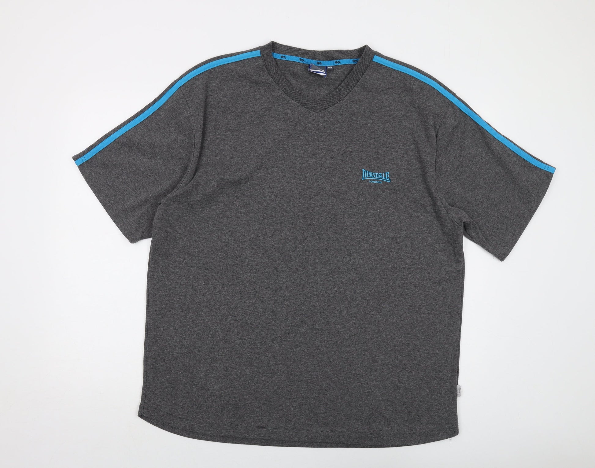 Lonsdale Mens Grey Polyester T-Shirt Size 2XL V-Neck
