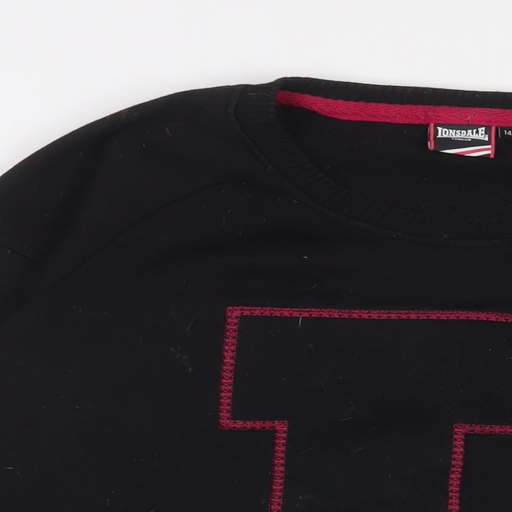 Lonsdale Womens Black Cotton Pullover Sweatshirt Size 14 Pullover