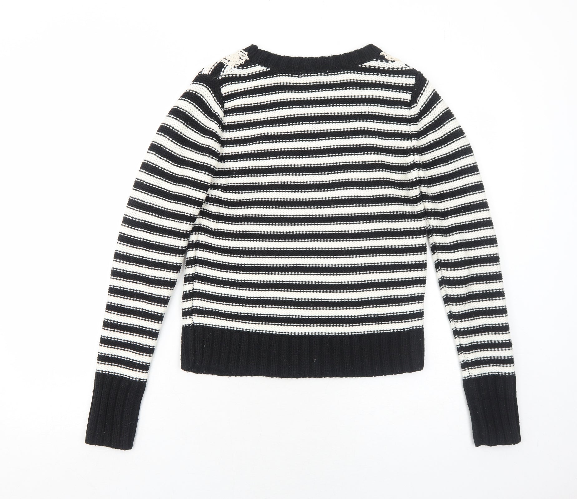 Love Knitwear Womens Black Round Neck Striped Acrylic Pullover Jumper Size 10