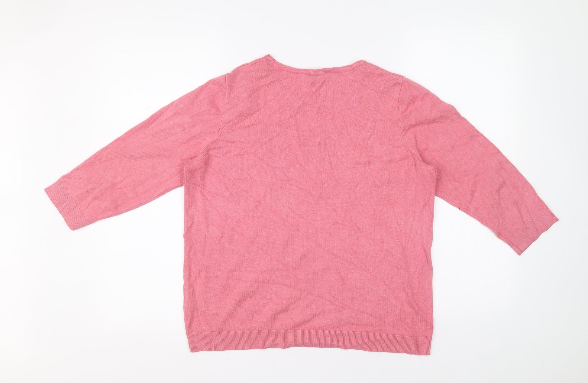 Love Knitwear Womens Pink Round Neck Geometric Viscose Pullover Jumper Size 14 - Hearts