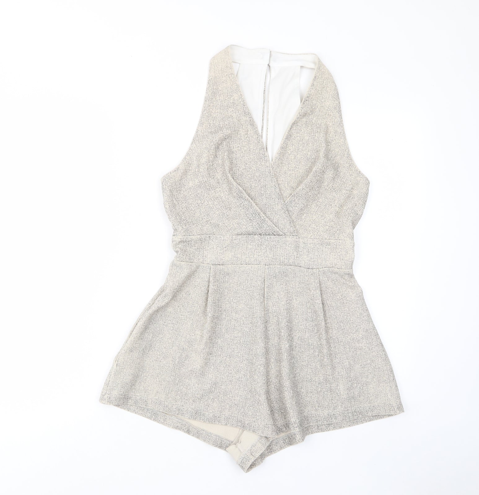 Love Womens Beige Polyester Playsuit One-Piece Size S Button - Pleated