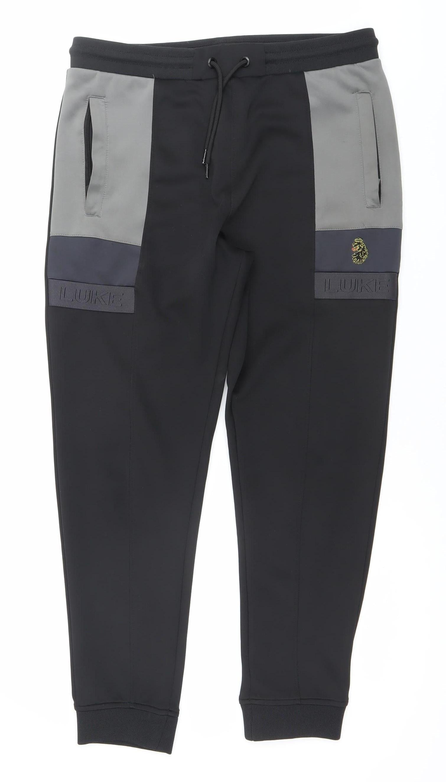 LUKE Men's Black Joggers Size L Softshell Tapered Activewear Trousers