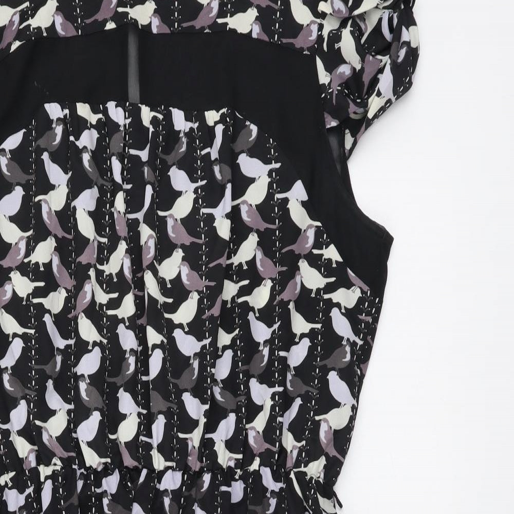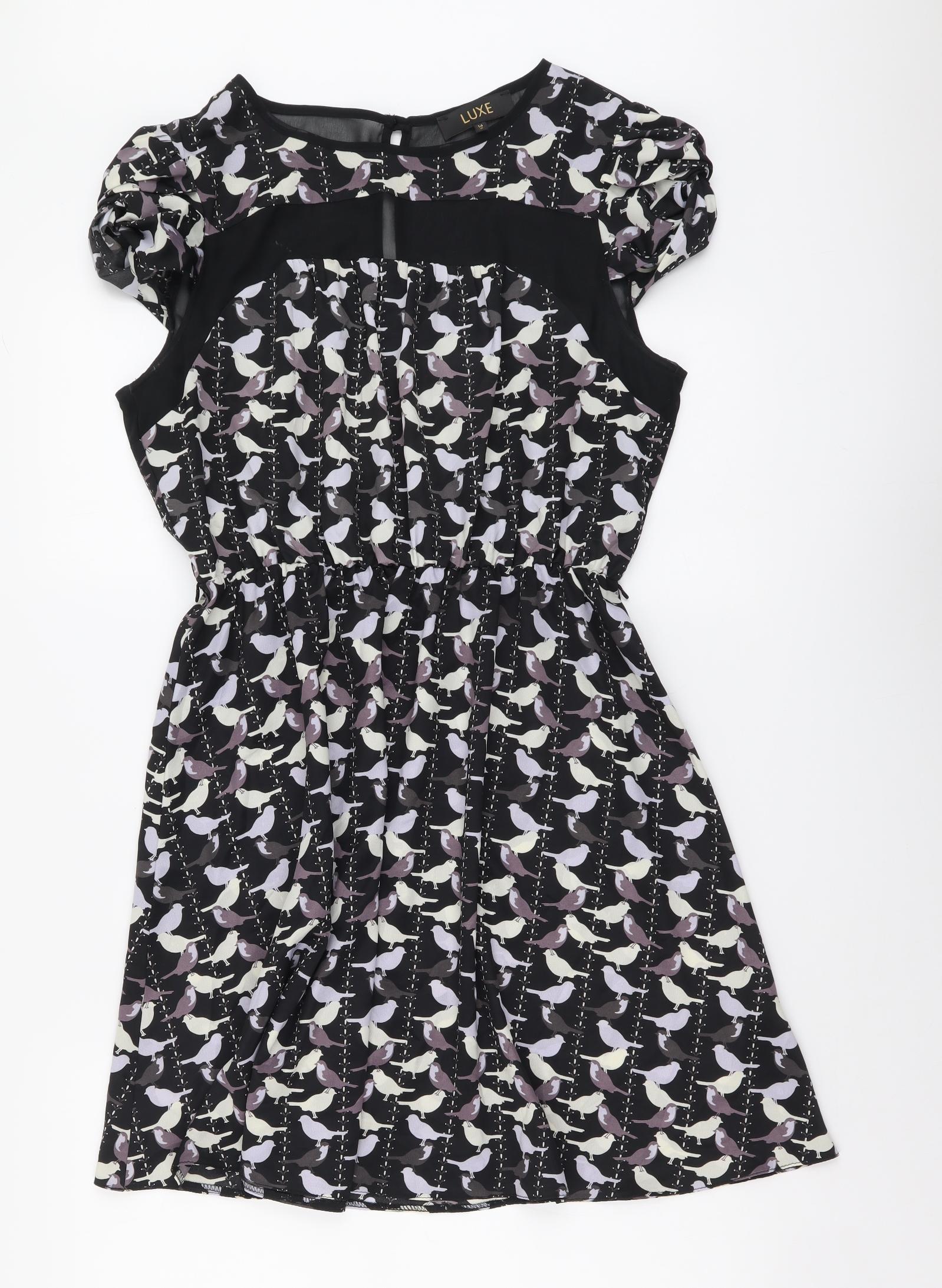 Luxe Womens Black Geometric Polyester Fit & Flare Size 14 Round Neck Button - Bird Pattern