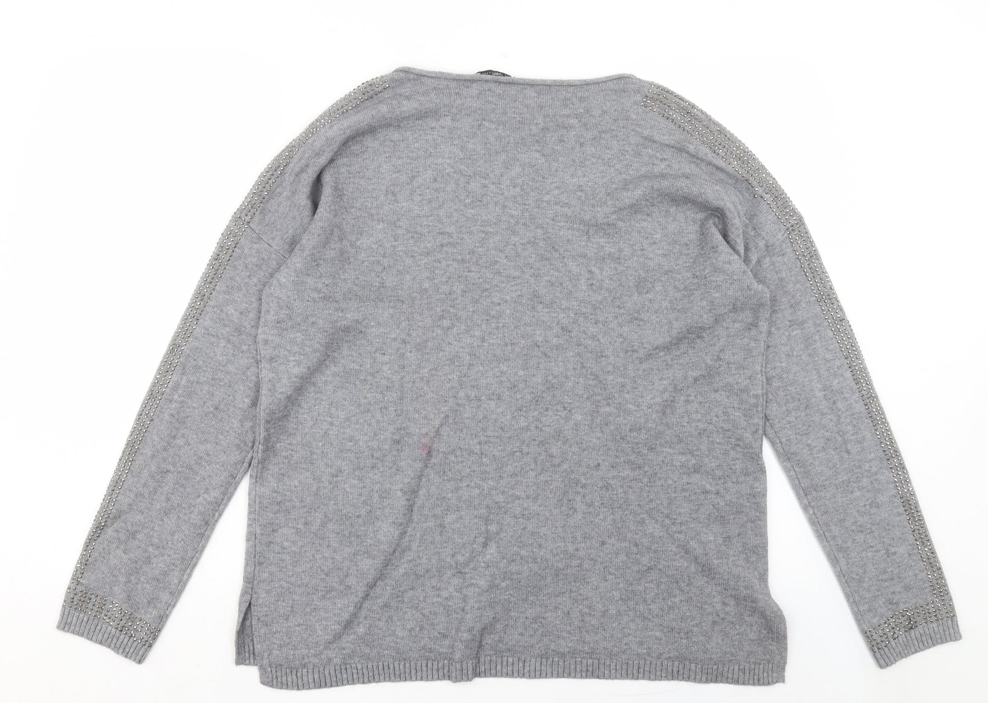 LV Clothing Womens Grey Crew Neck Viscose Pullover Jumper Size L