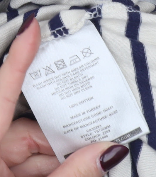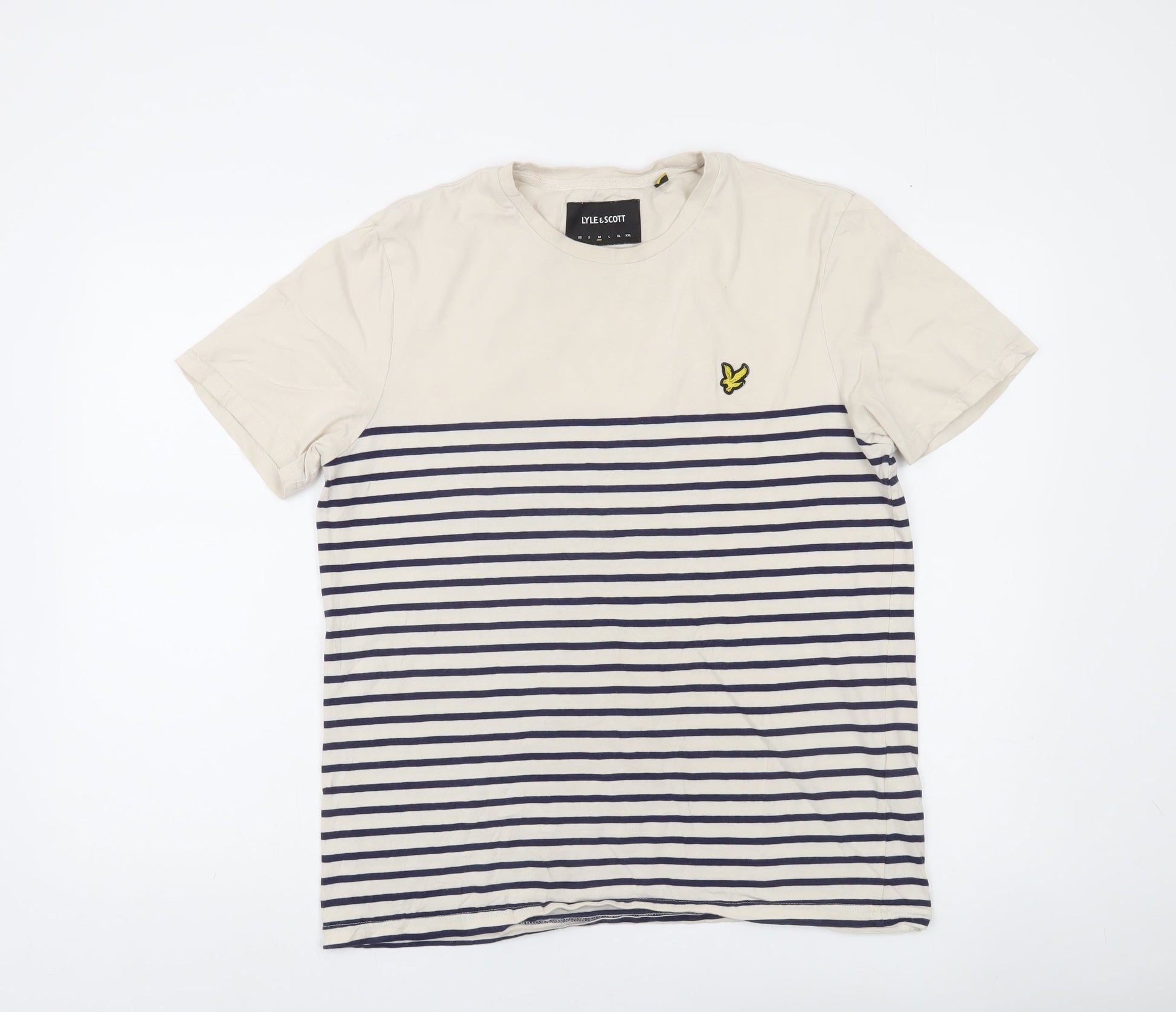 Lyle & Scott Men's Beige Navy Striped Cotton Crew Neck T-Shirt Size M