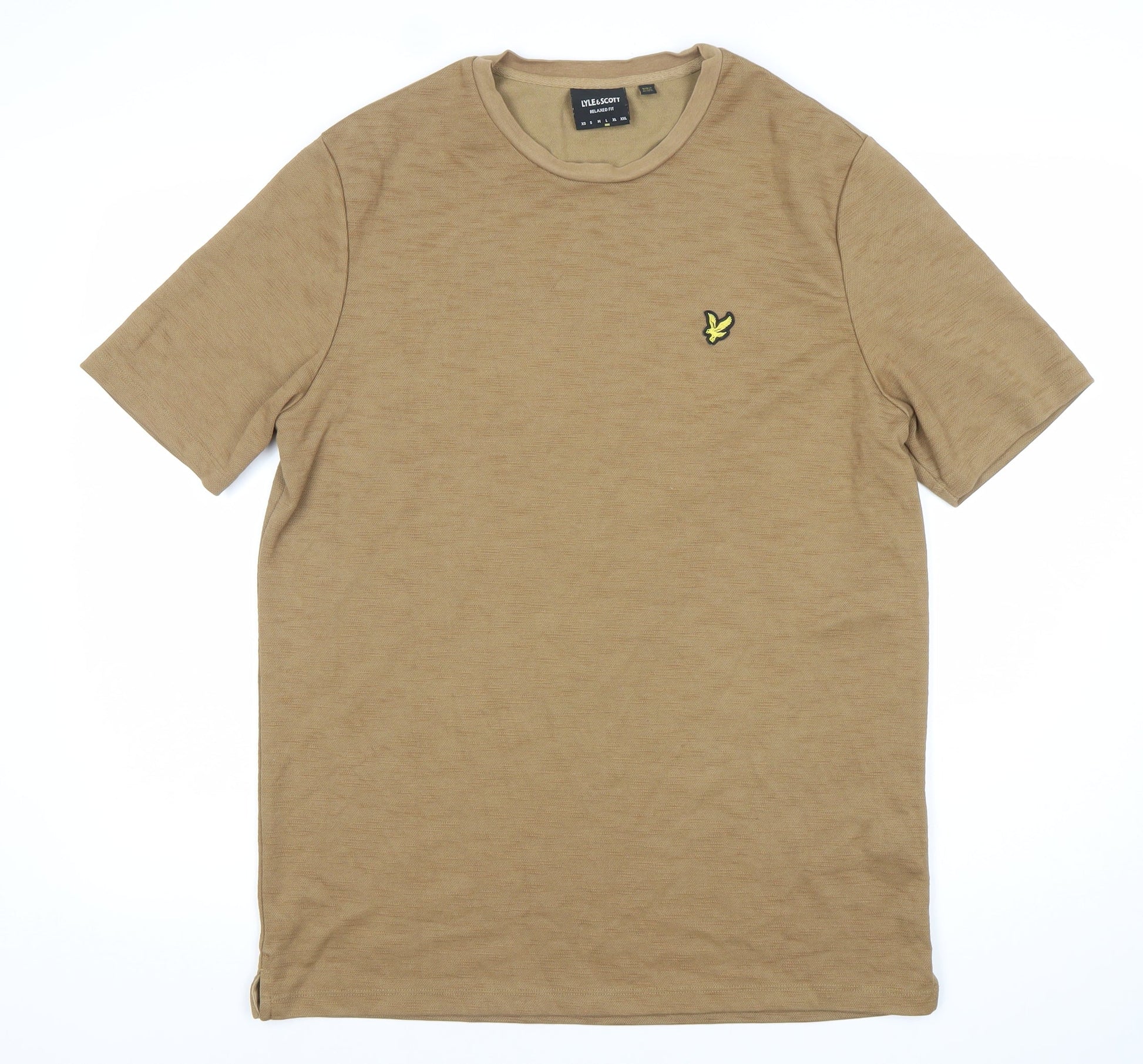 Lyle & Scott Men's Beige Relaxed Fit Cotton Blend Logo T-Shirt Size L