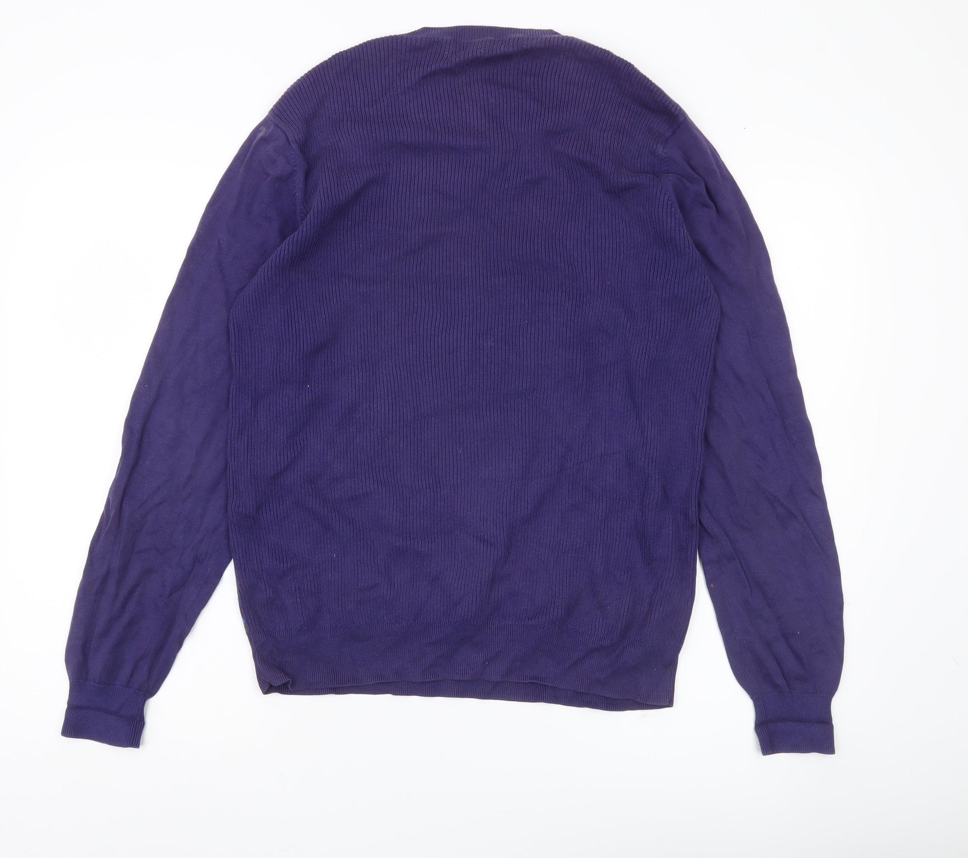 Lyle & Scott Men's Blue Argyle V-Neck Cotton Jumper Size M
