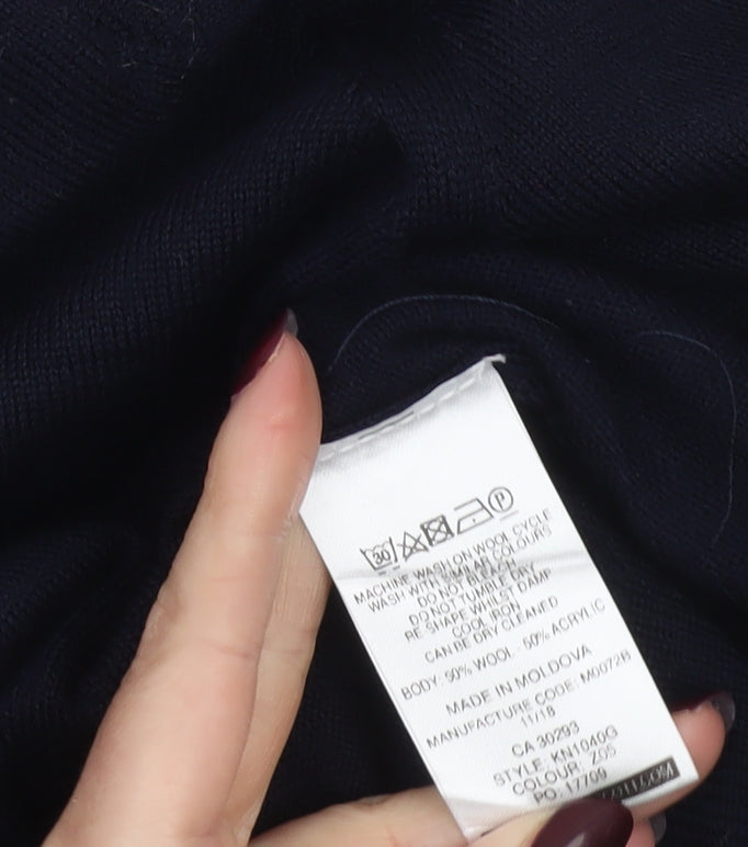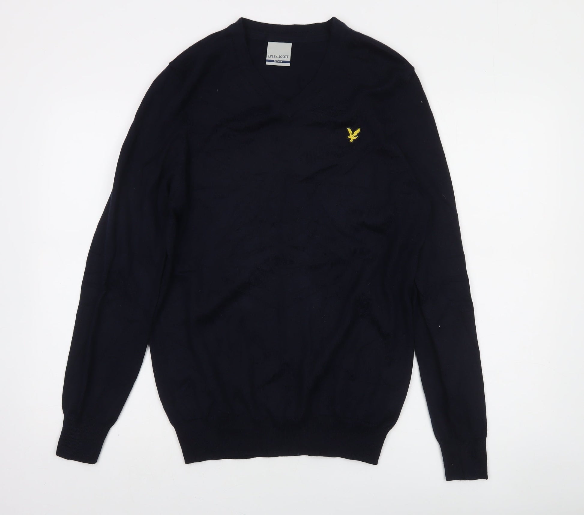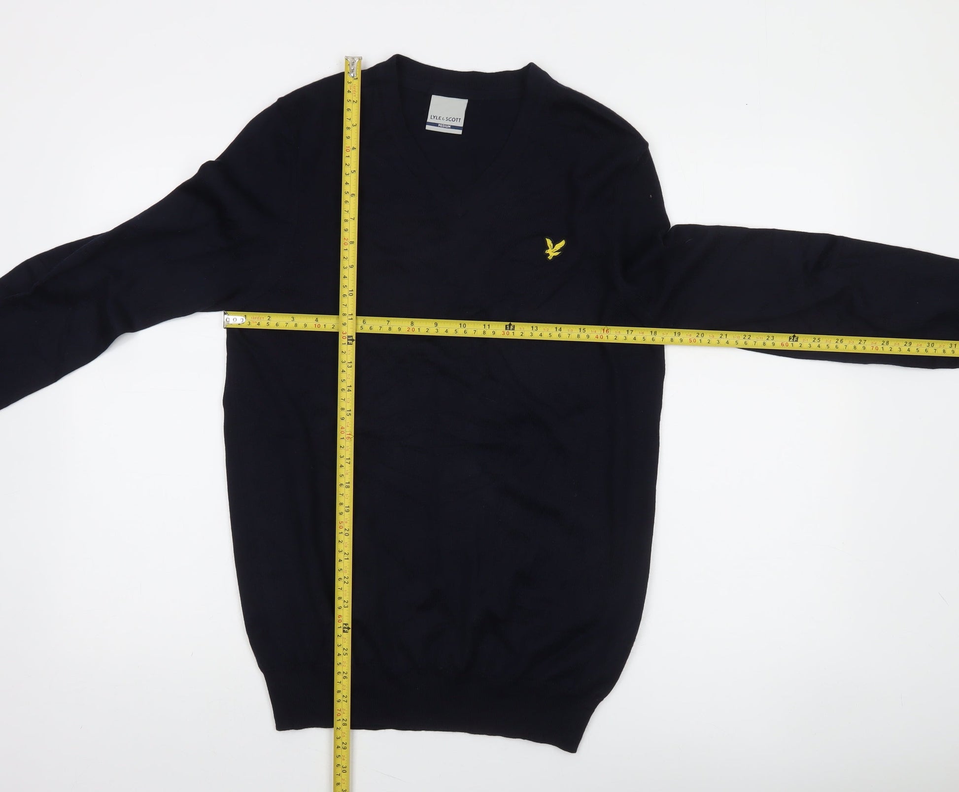 Lyle & Scott Men's Blue Wool V-Neck Jumper Medium