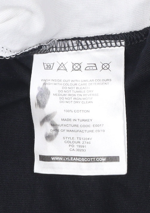 Lyle & Scott Mens M Black Green Beige Colourblock Cotton T-Shirt