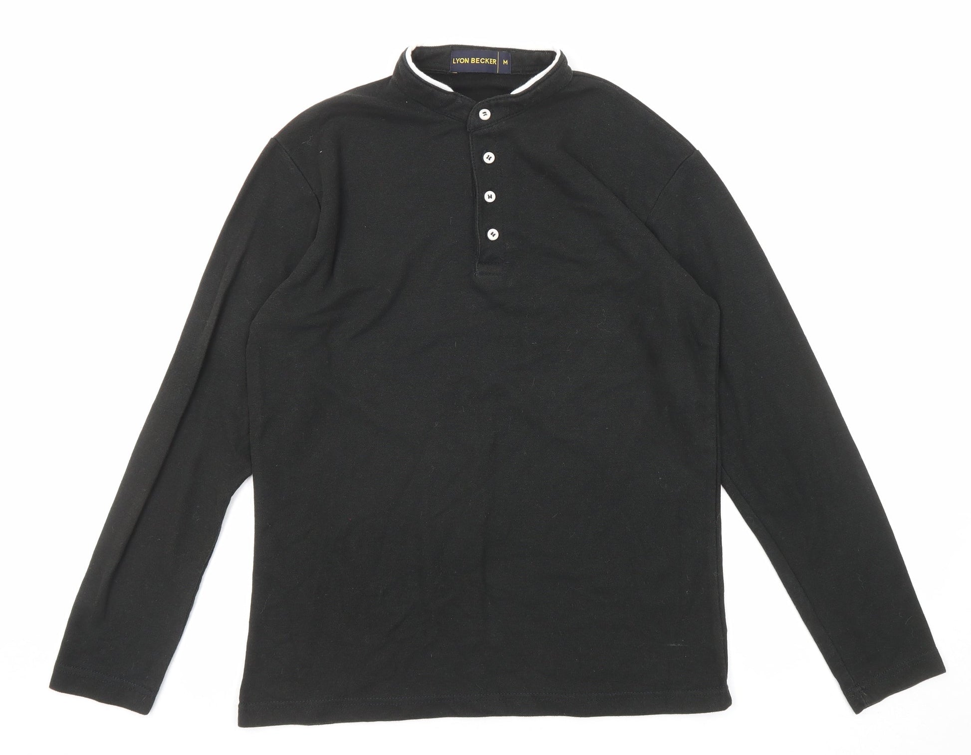 Lyon Becker Mens Black Cotton Polo Size M Collared Button