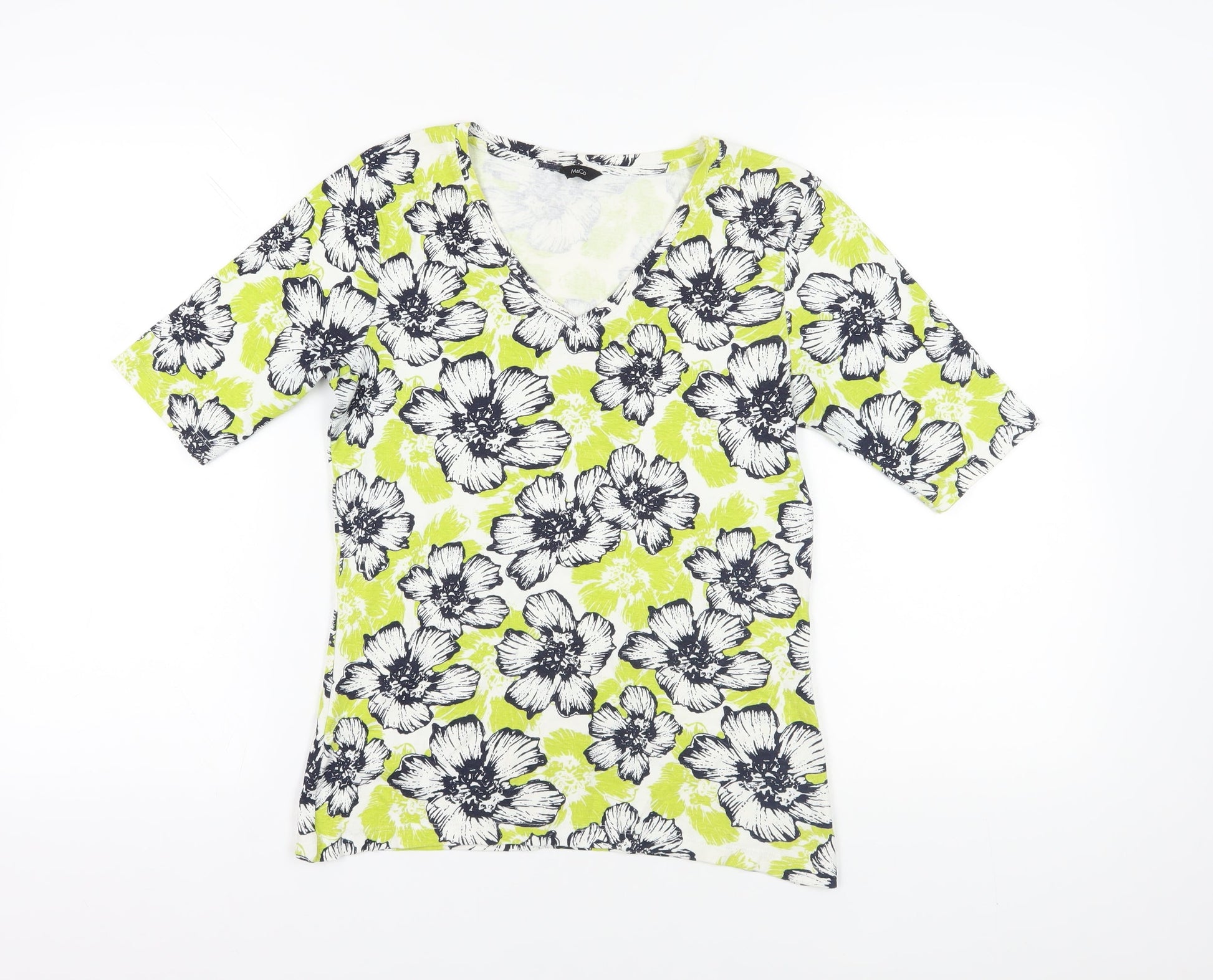 M&Co Floral T-Shirt, Size 14 Multicoloured, V-Neck