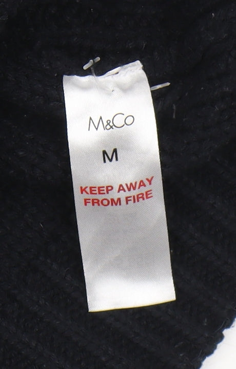 M&Co Men's Black Henley Waffle Knit Jumper Size M