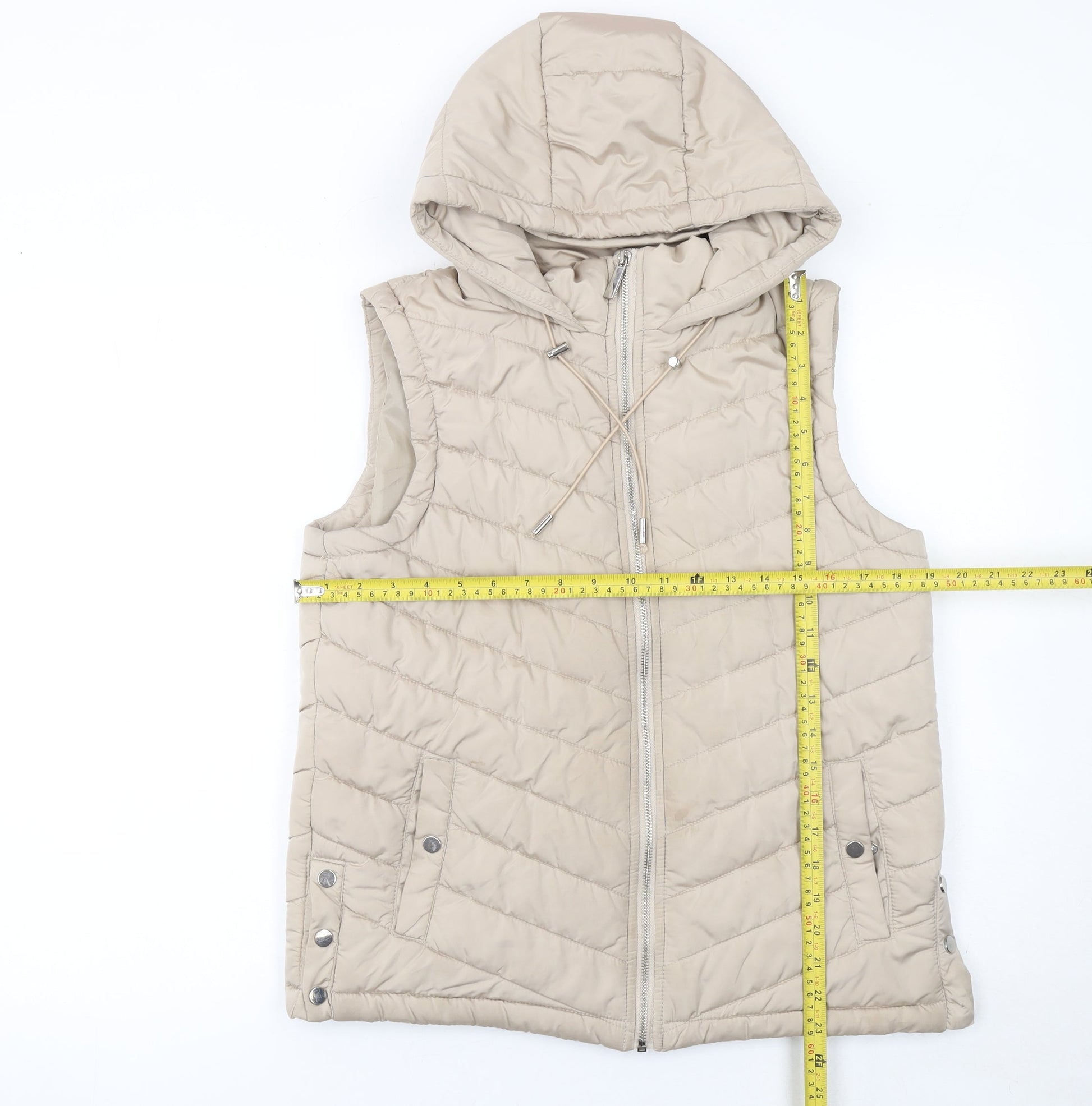 M&Co Women Beige Hooded Quilted Puffer Waistcoat UK 12