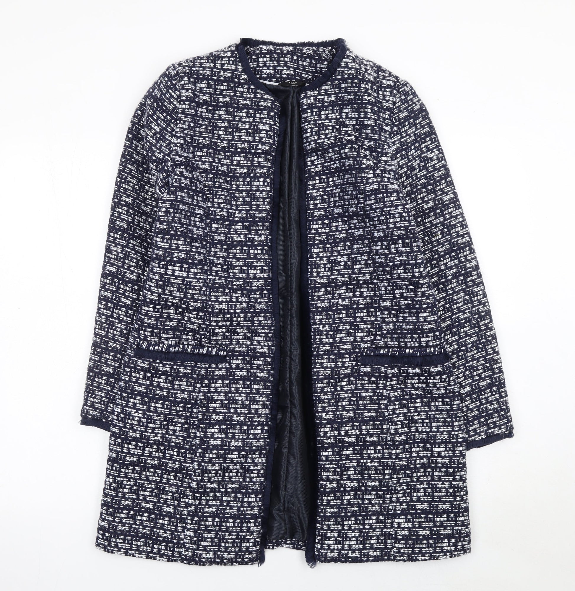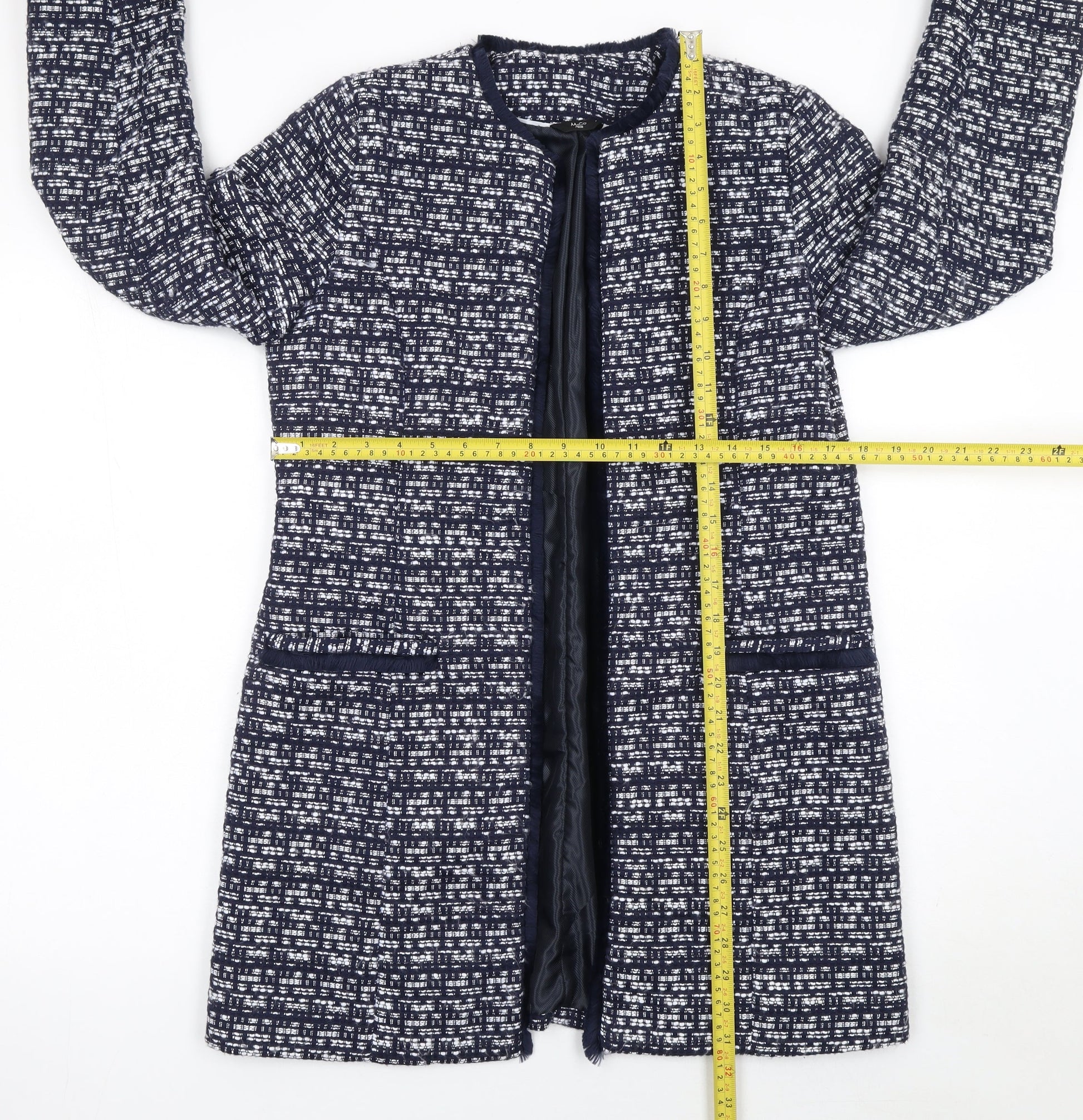 M&Co Women Blue Tweed Mid-Length Open Coat Size 8