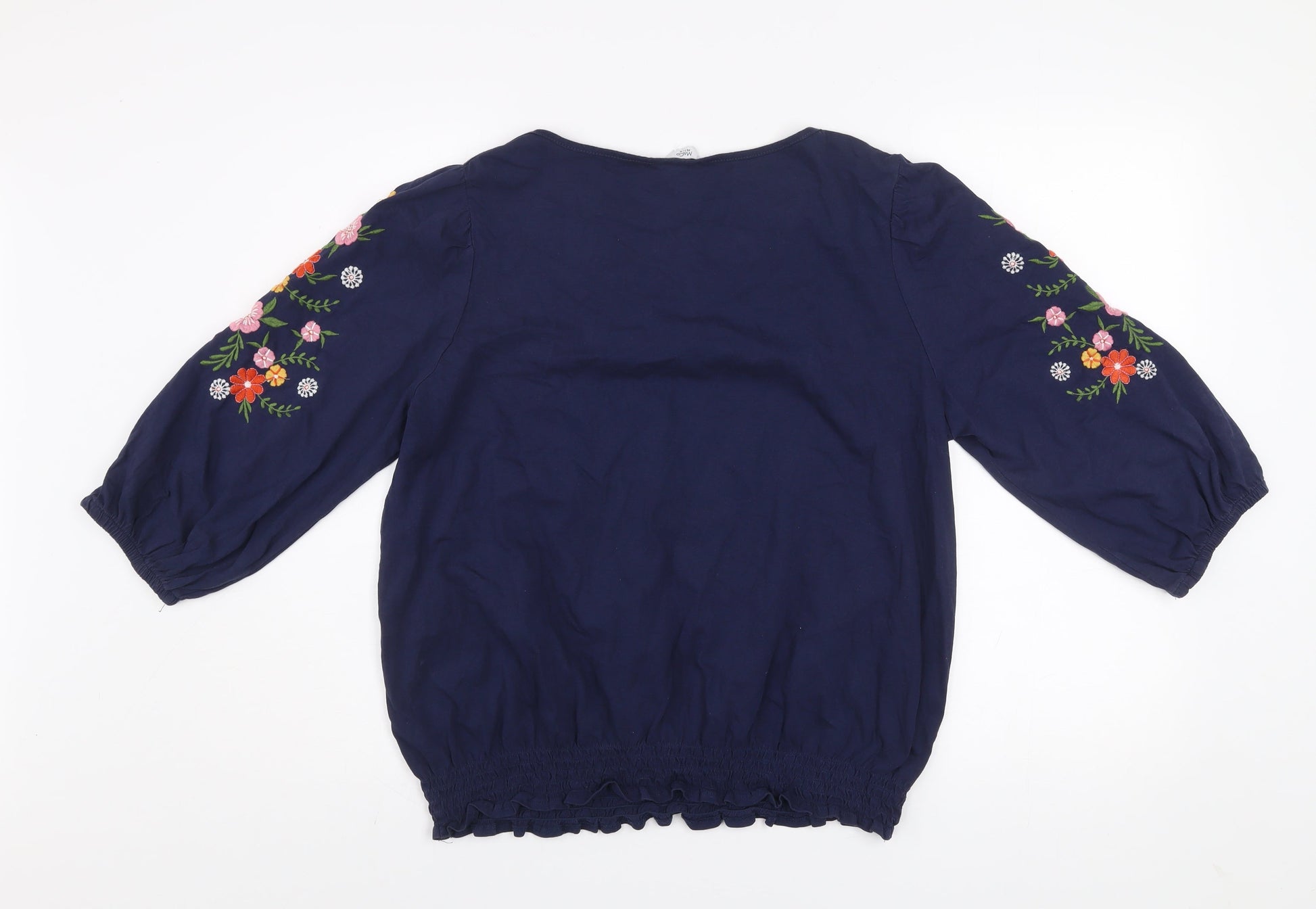 M&Co Women’s Blue Embroidered Cotton Tunic Blouse Size 16