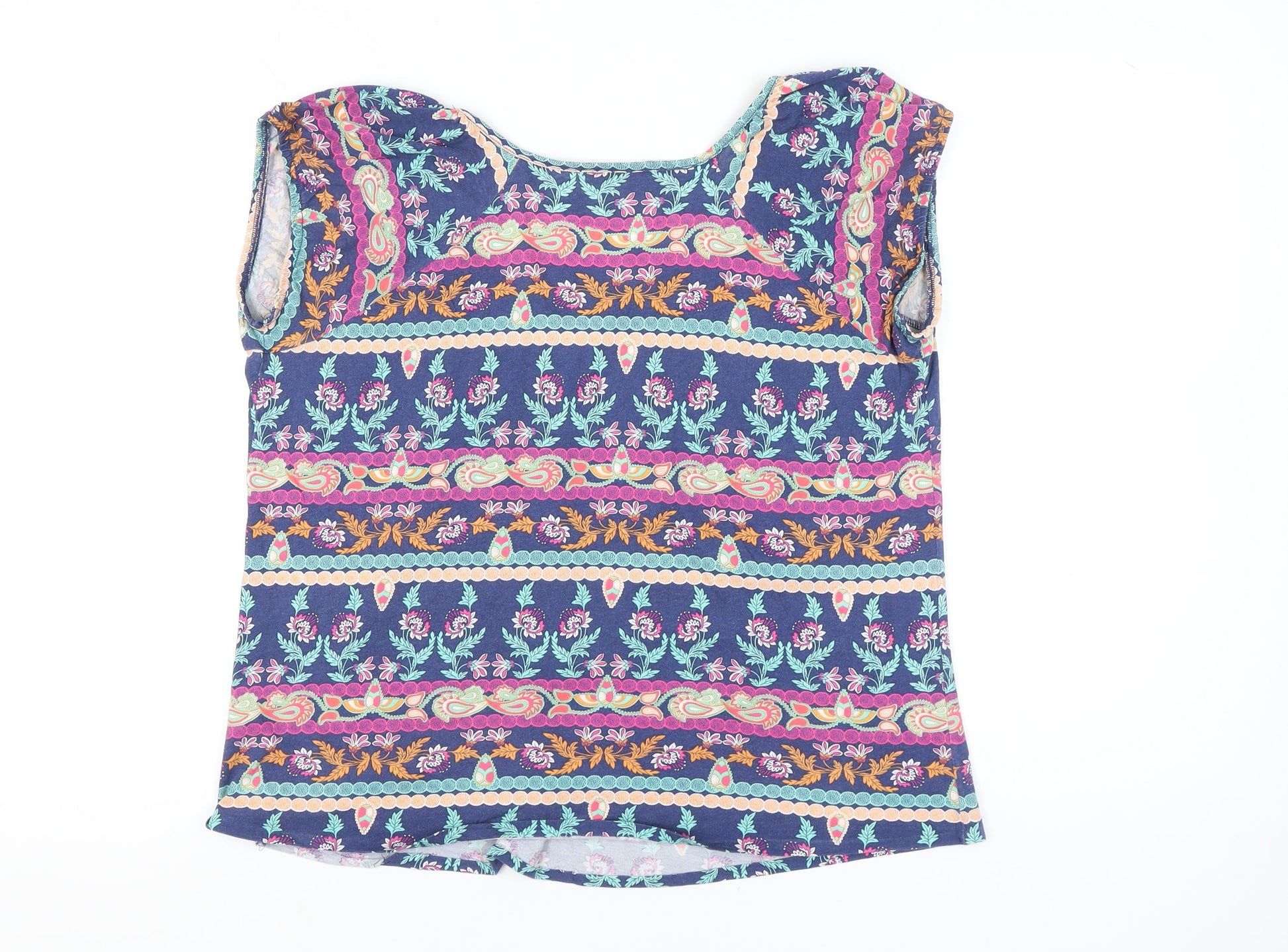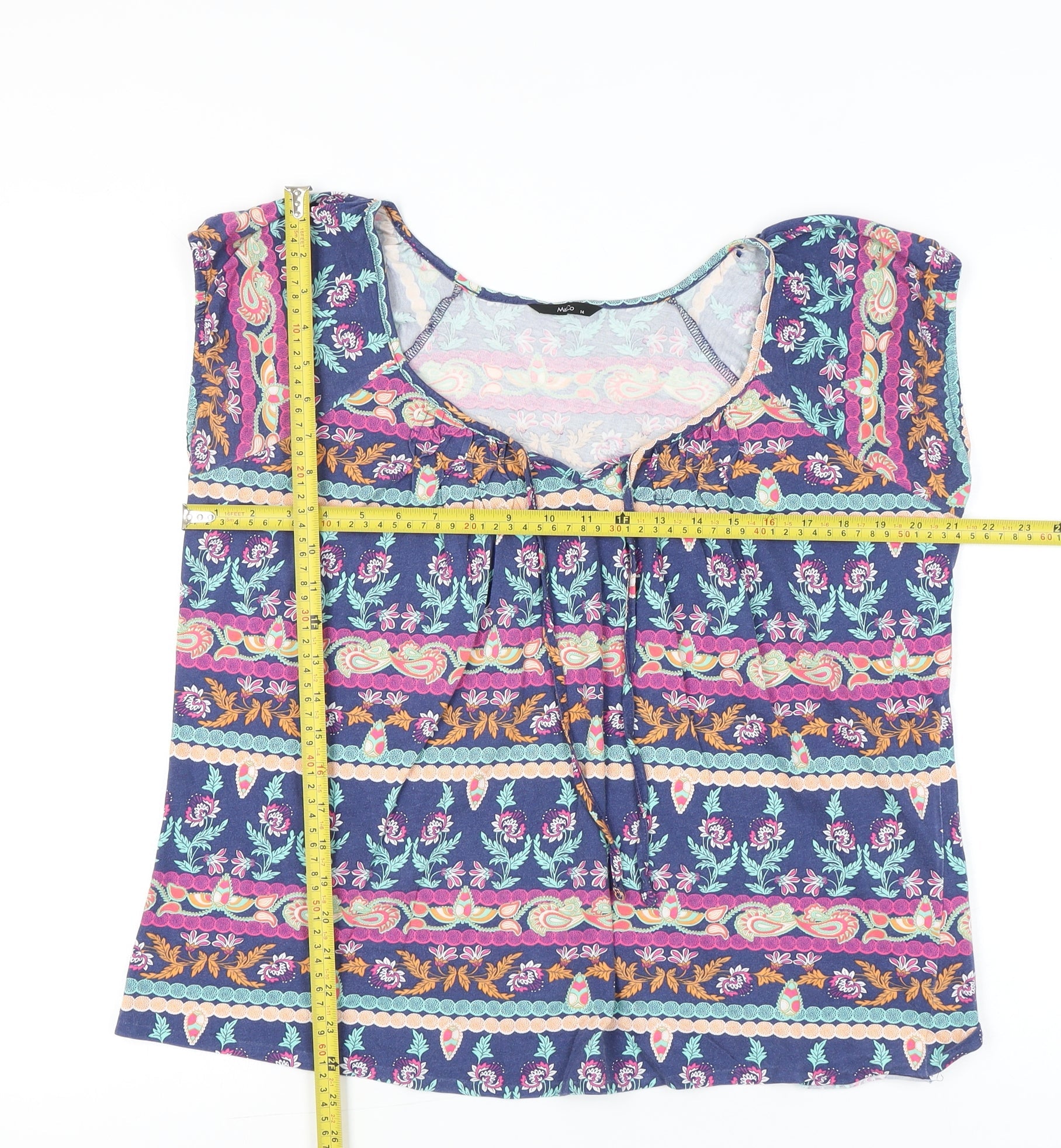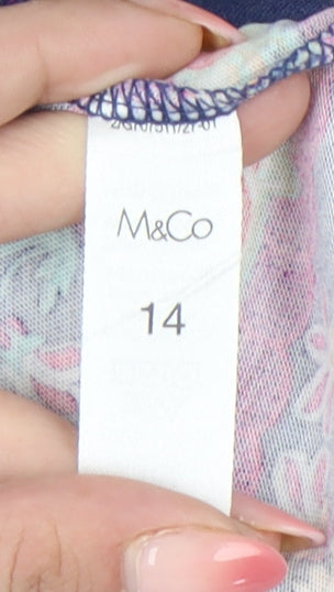 M&Co Women’s Blue Floral Tunic Blouse Size 14 Cotton Sleeveless