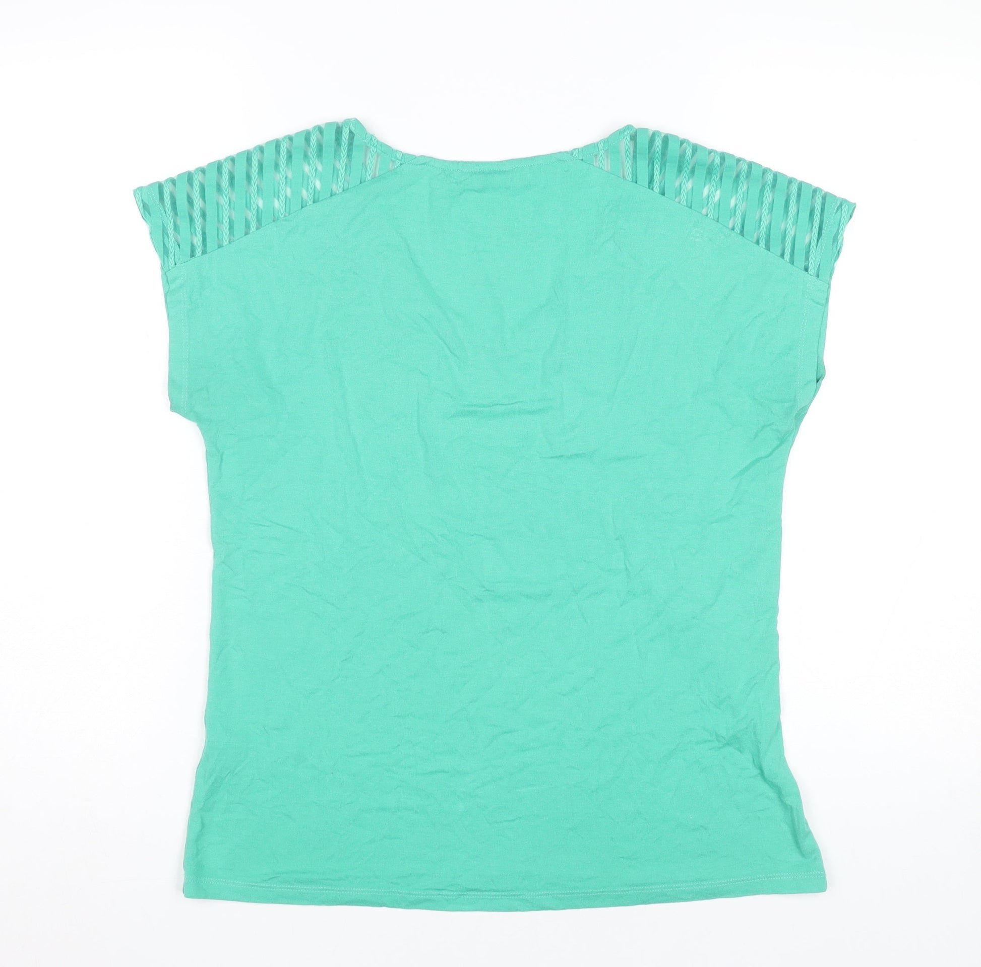M&Co Women’s Green V-Neck Cut Out Shoulder T-Shirt Size 10