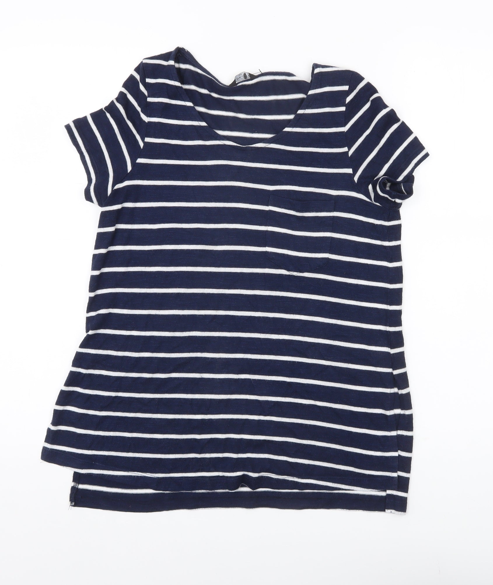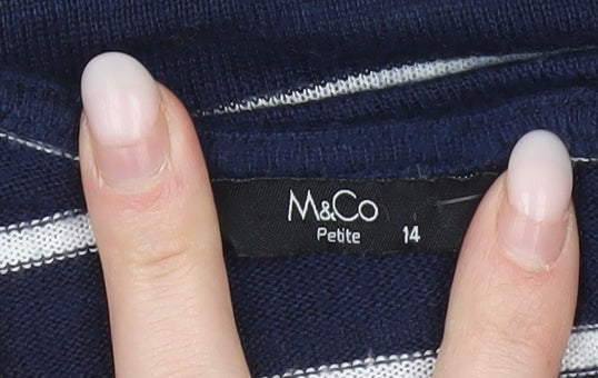 M&Co Women’s Petite Blue Striped T-Shirt Size 14 Short Sleeve