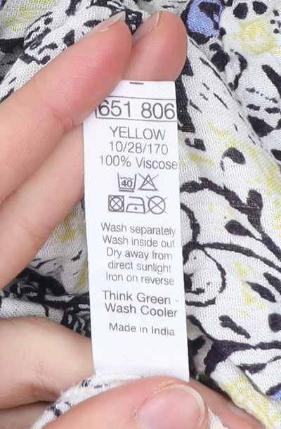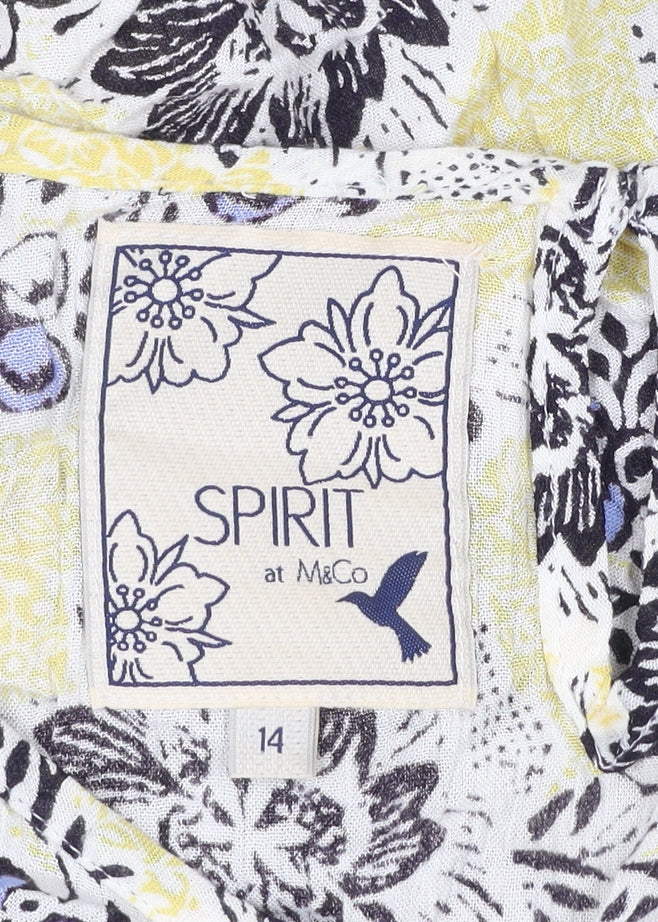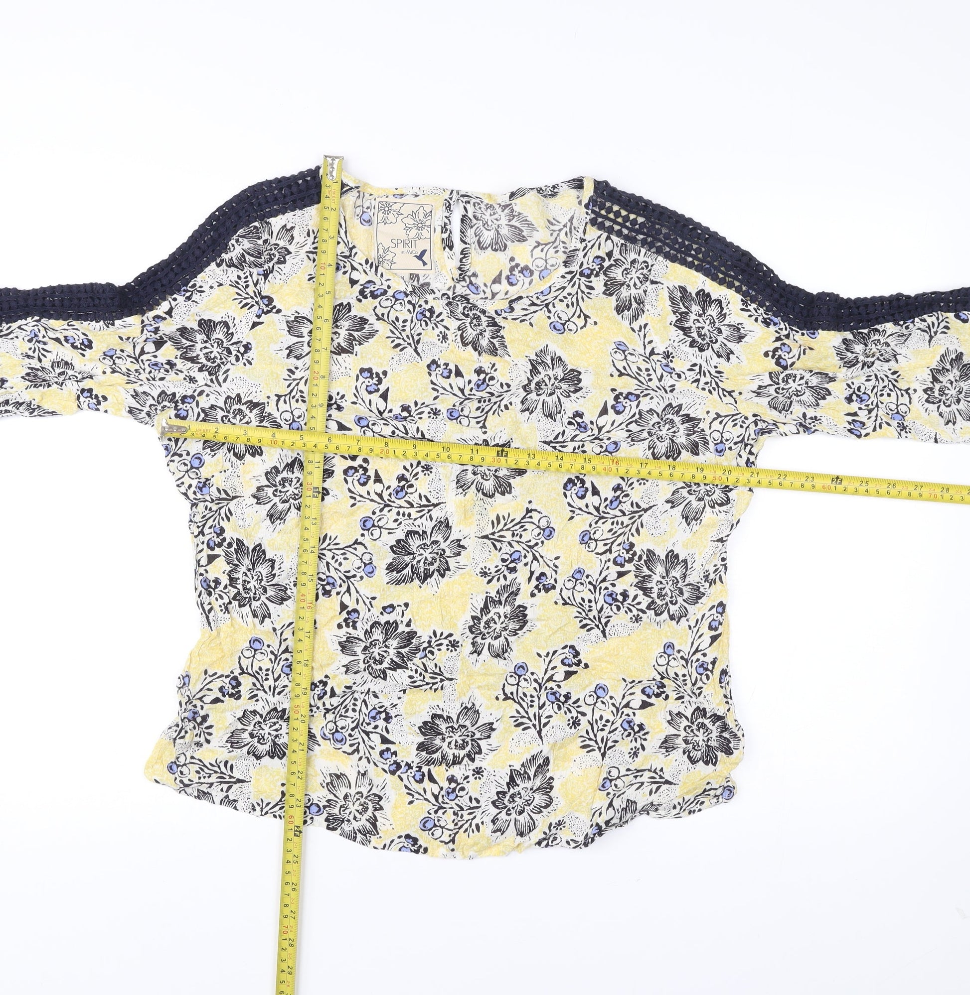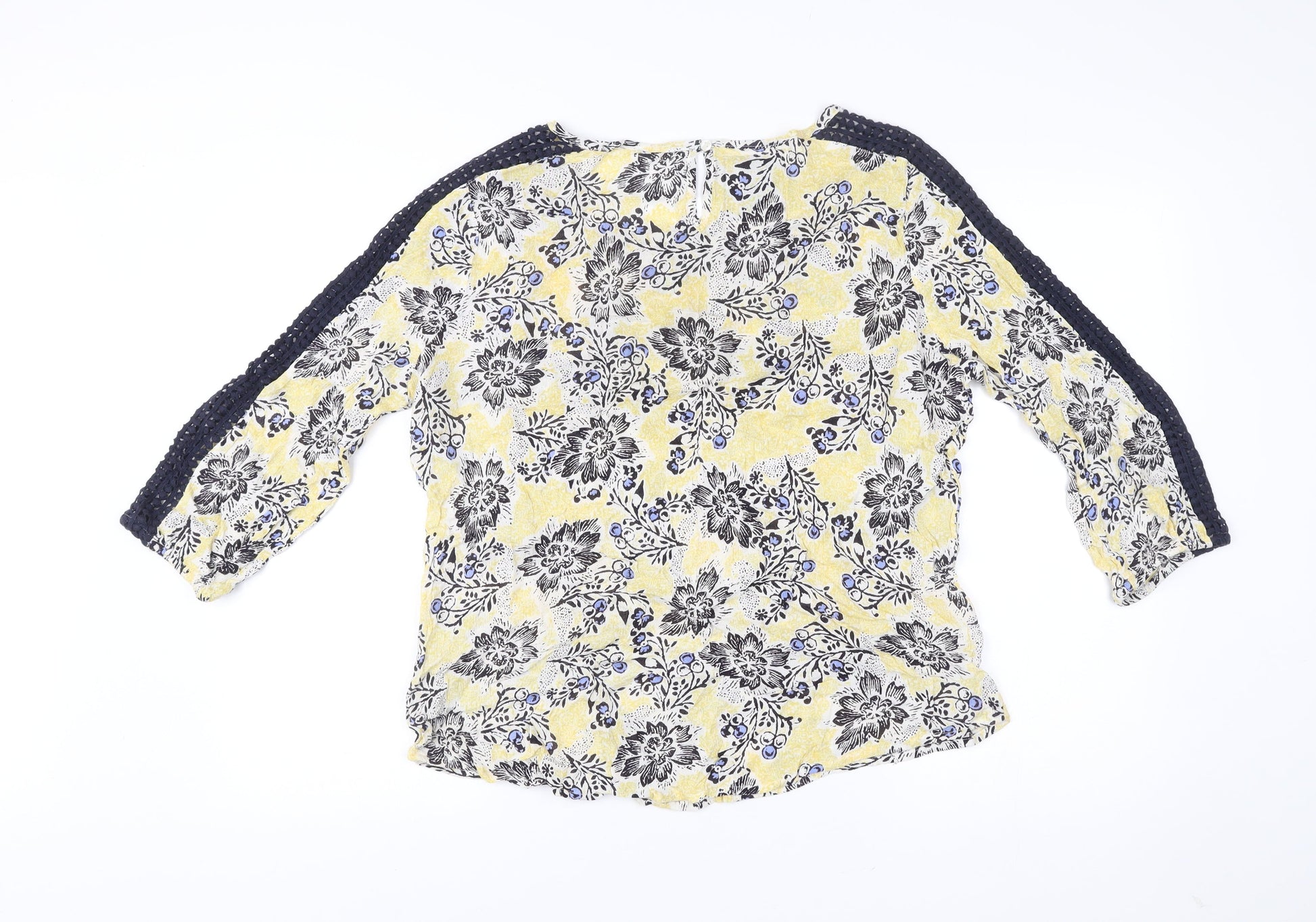 M&Co Women’s Yellow Floral Crochet 3/4 Sleeve Tunic Blouse Size 14