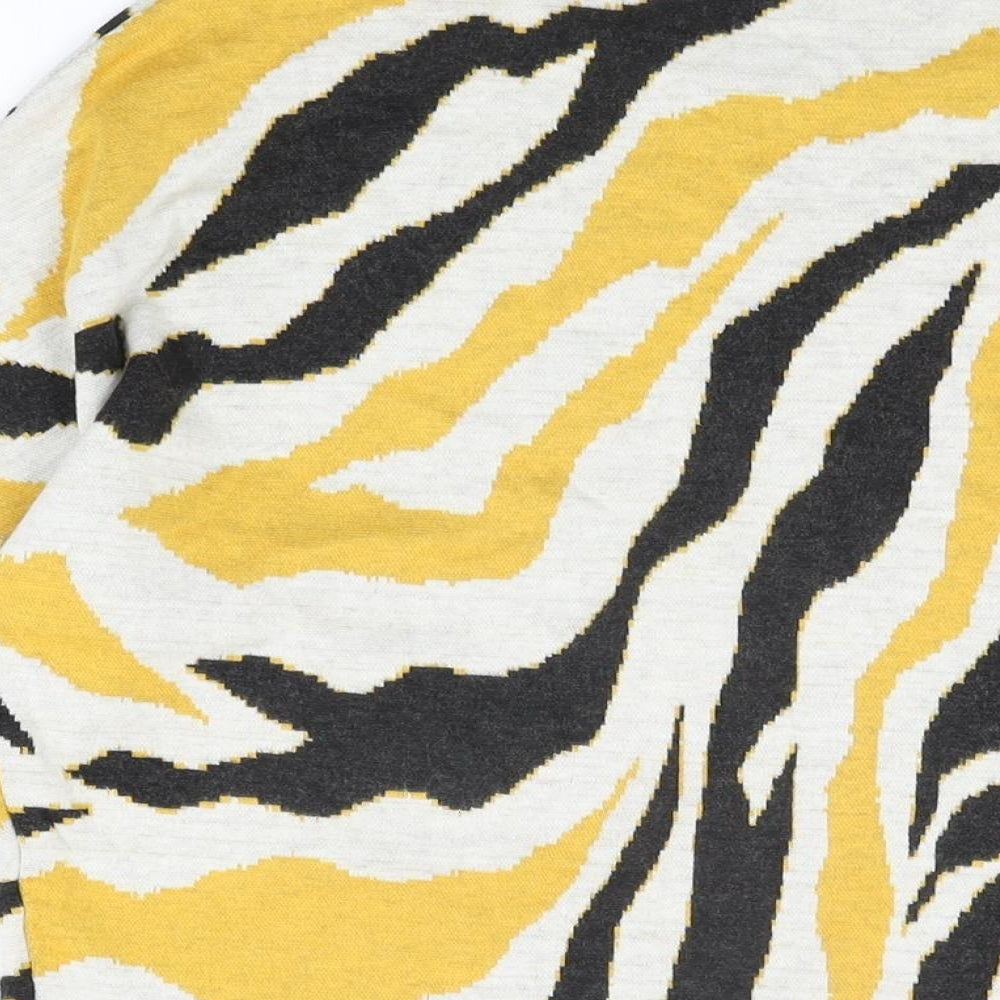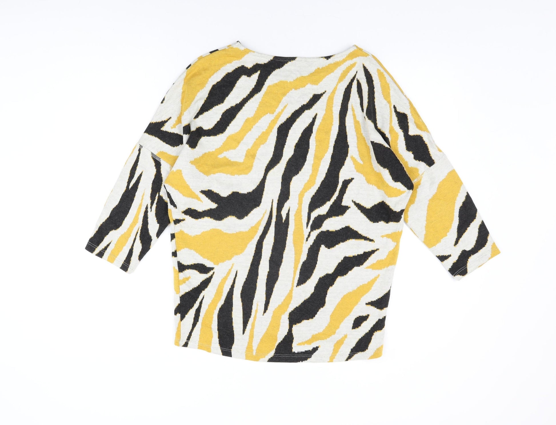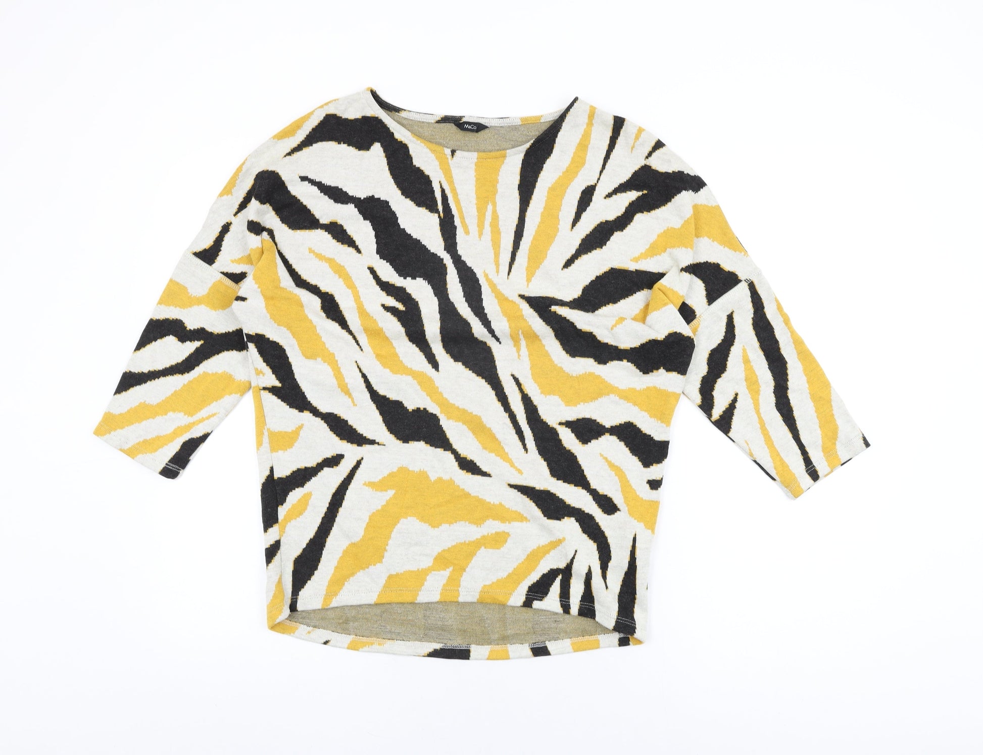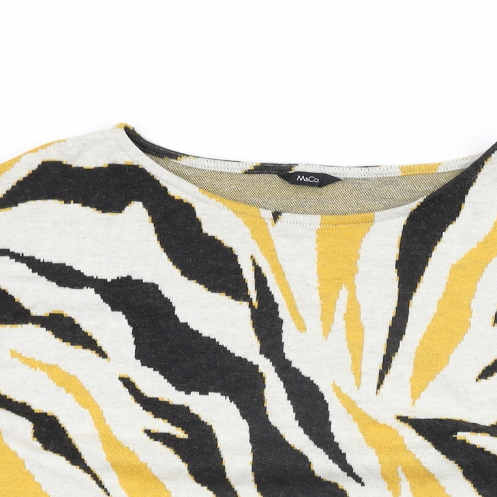 M&Co Womens Beige Geometric Polyester Basic T-Shirt Size 8 Round Neck
