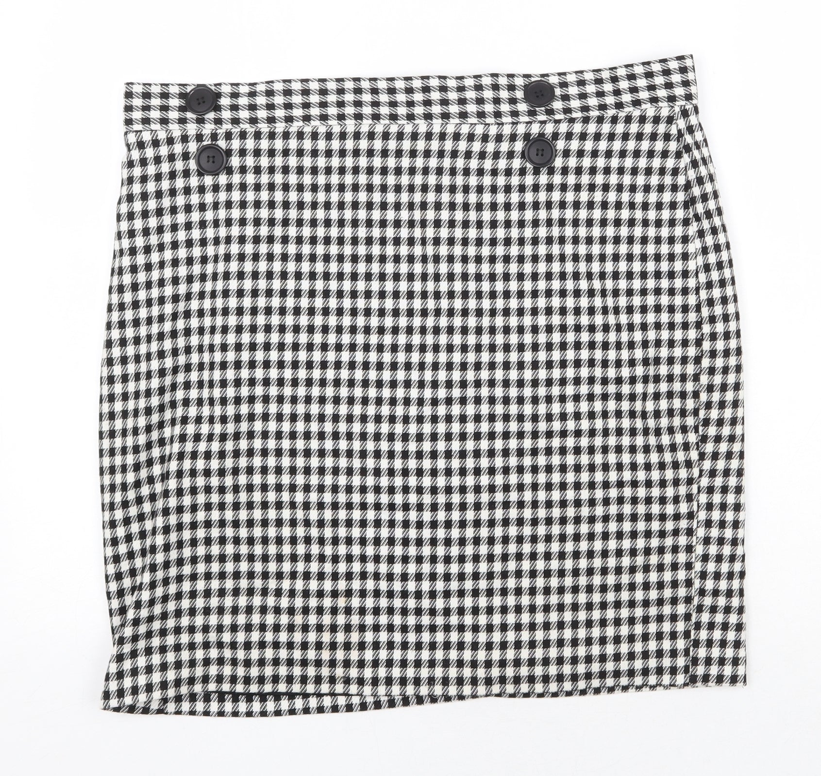 M&Co Womens Black Check Polyester Mini Skirt Size 10 Zip