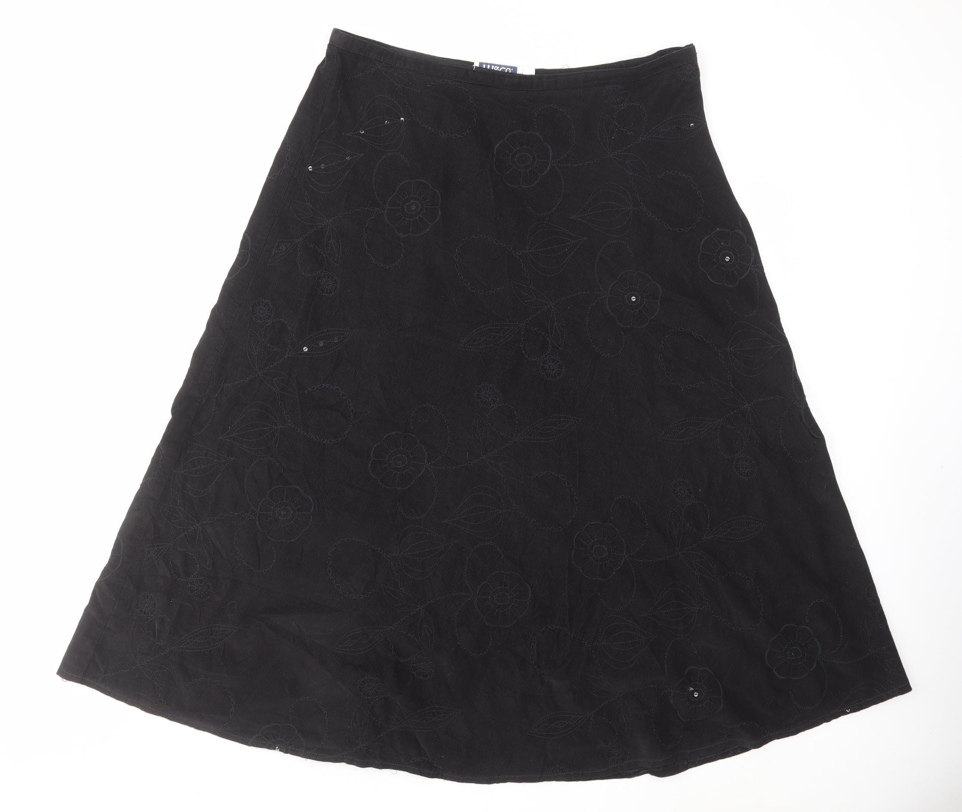 M&Co Womens Black Floral Cotton Swing Skirt Size 16 Zip