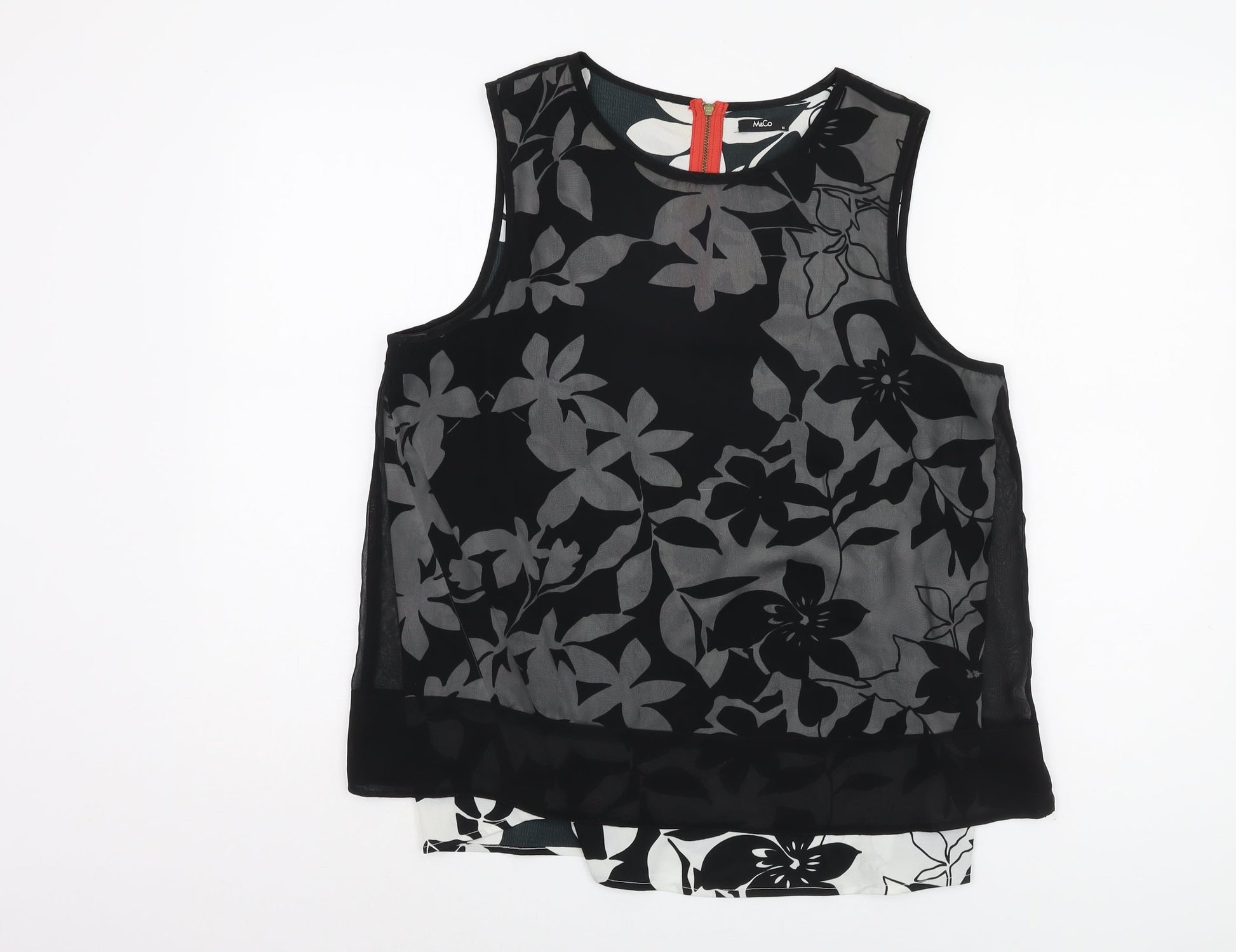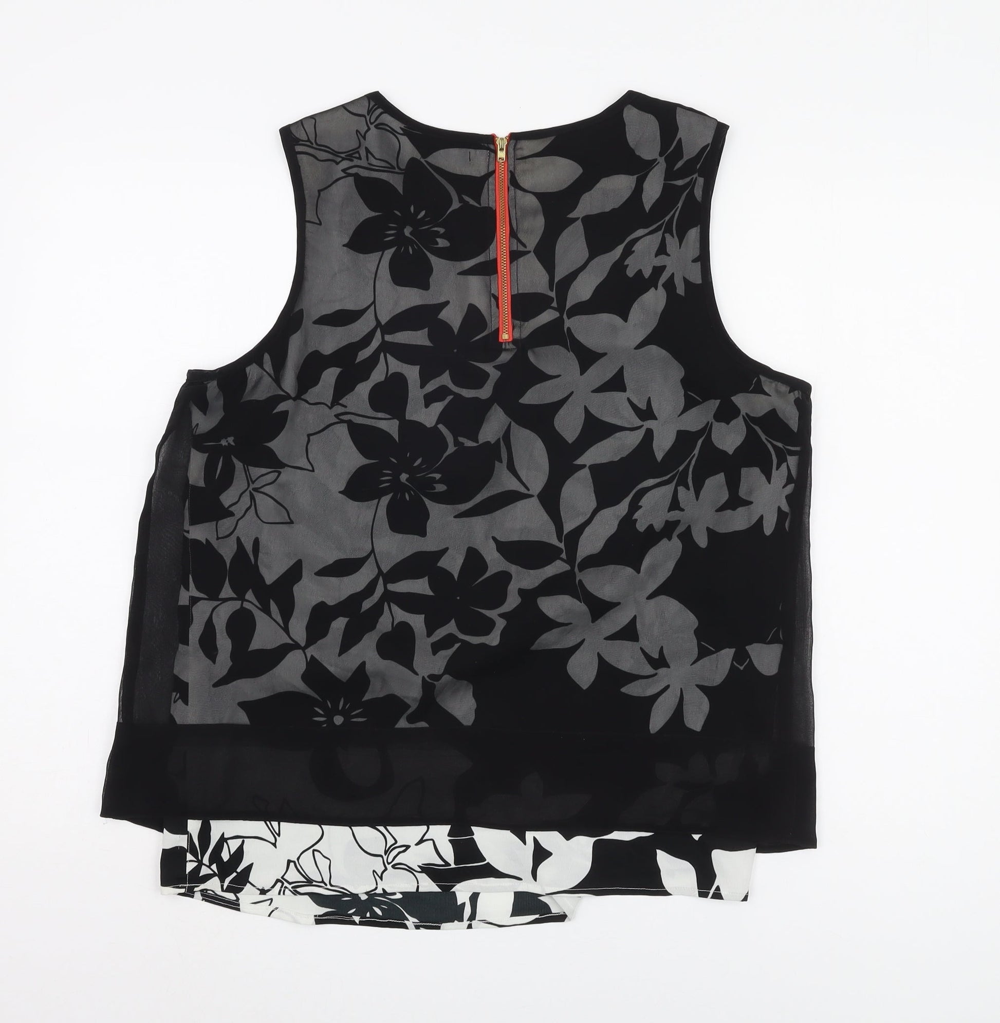 M&Co Women's Black Floral Sleeveless Tunic, Size 14