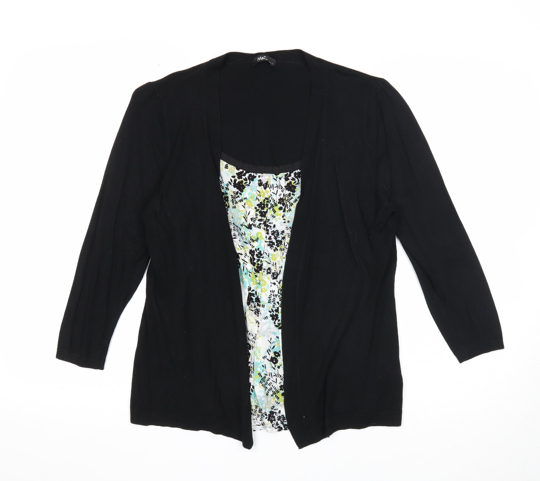 M&Co Womens Black Floral Viscose Basic Blouse Size S Scoop Neck - Twin Set