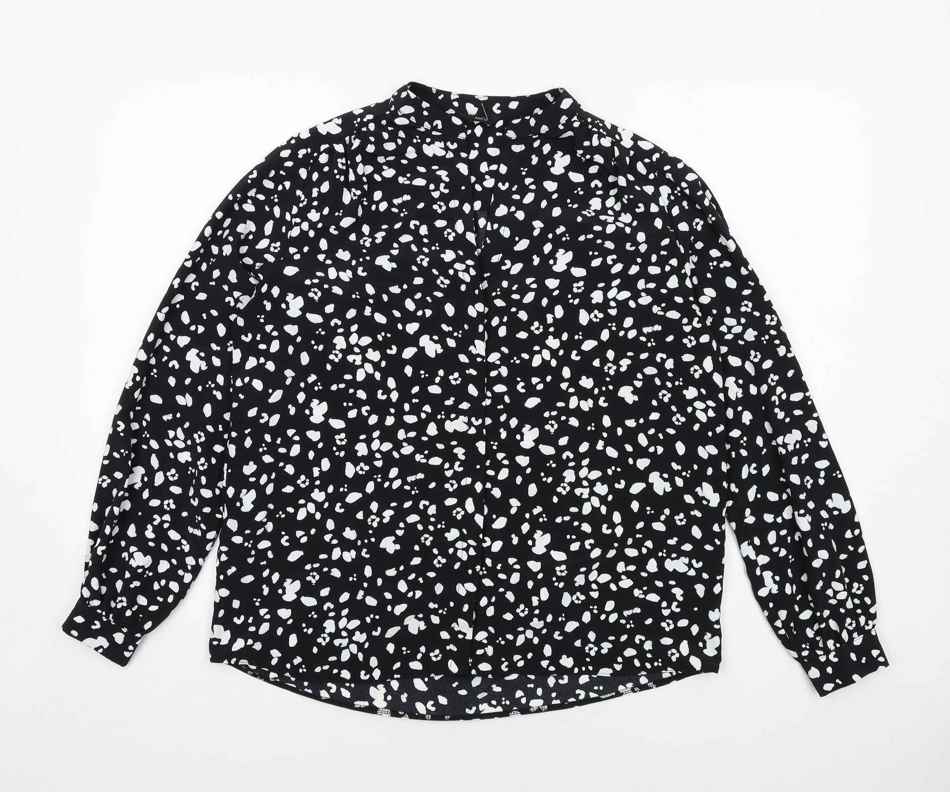 M&Co Womens Black Geometric Polyester Basic Button-Up Size 12 Round Neck