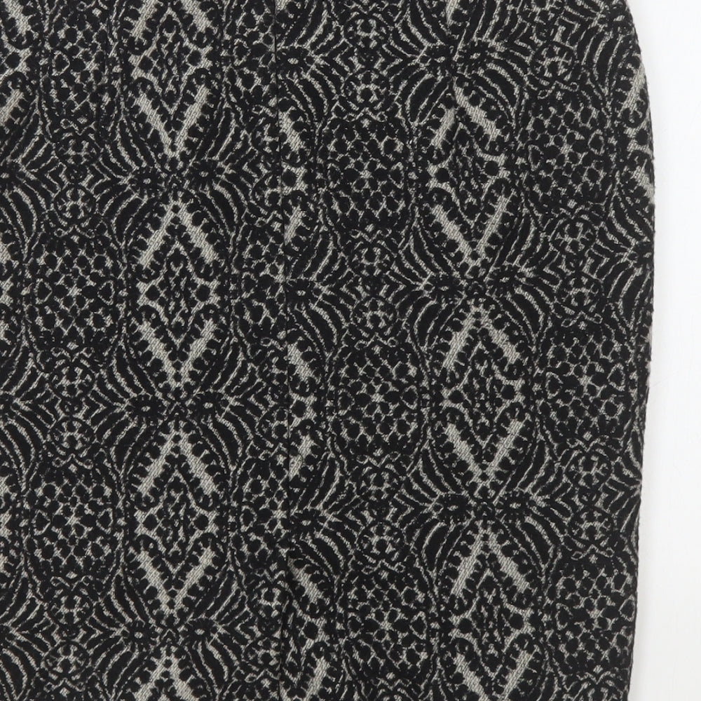 M&Co Womens Black Geometric Polyester Straight & Pencil Skirt Size 10 Zip - Leather Waist