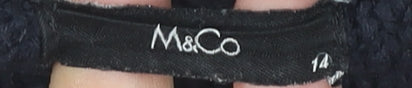 M&Co Womens Black Knit Bomber Jacket Size 14 Full Zip Autumn Winter