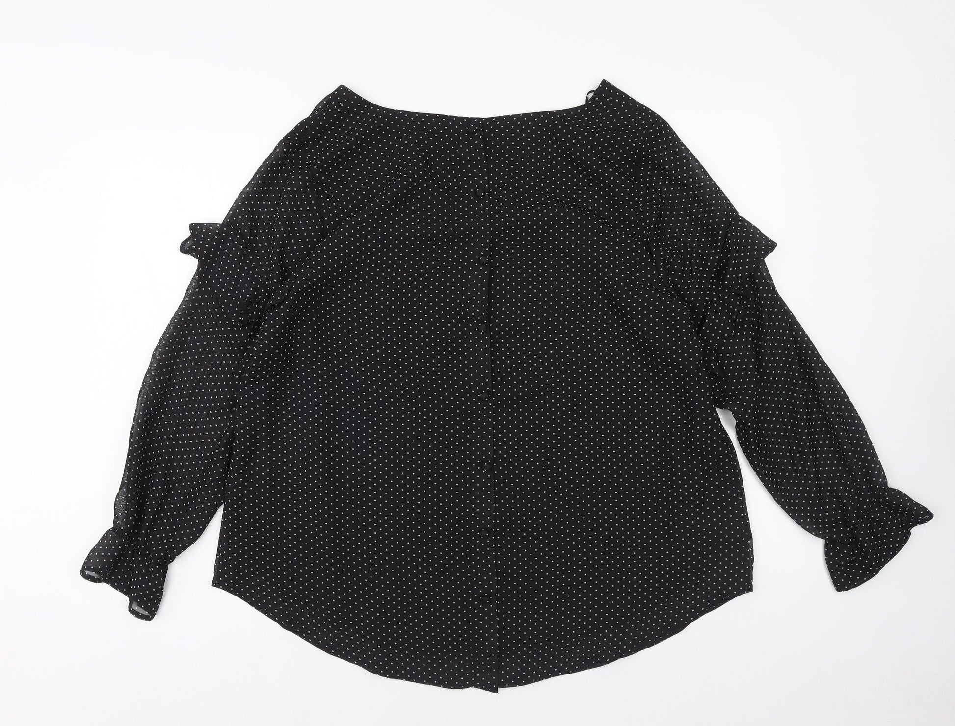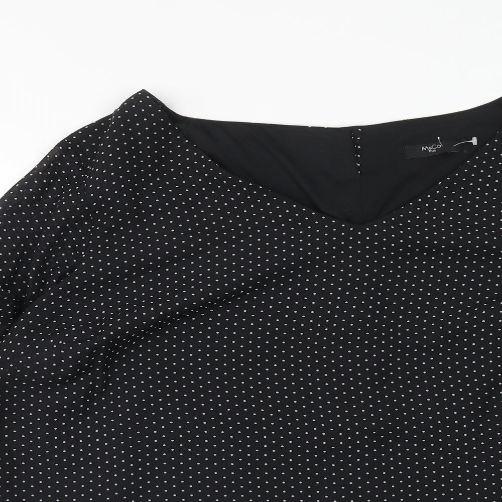 M&Co Womens Black Polka Dot Polyester Basic Blouse Size 18 V-Neck
