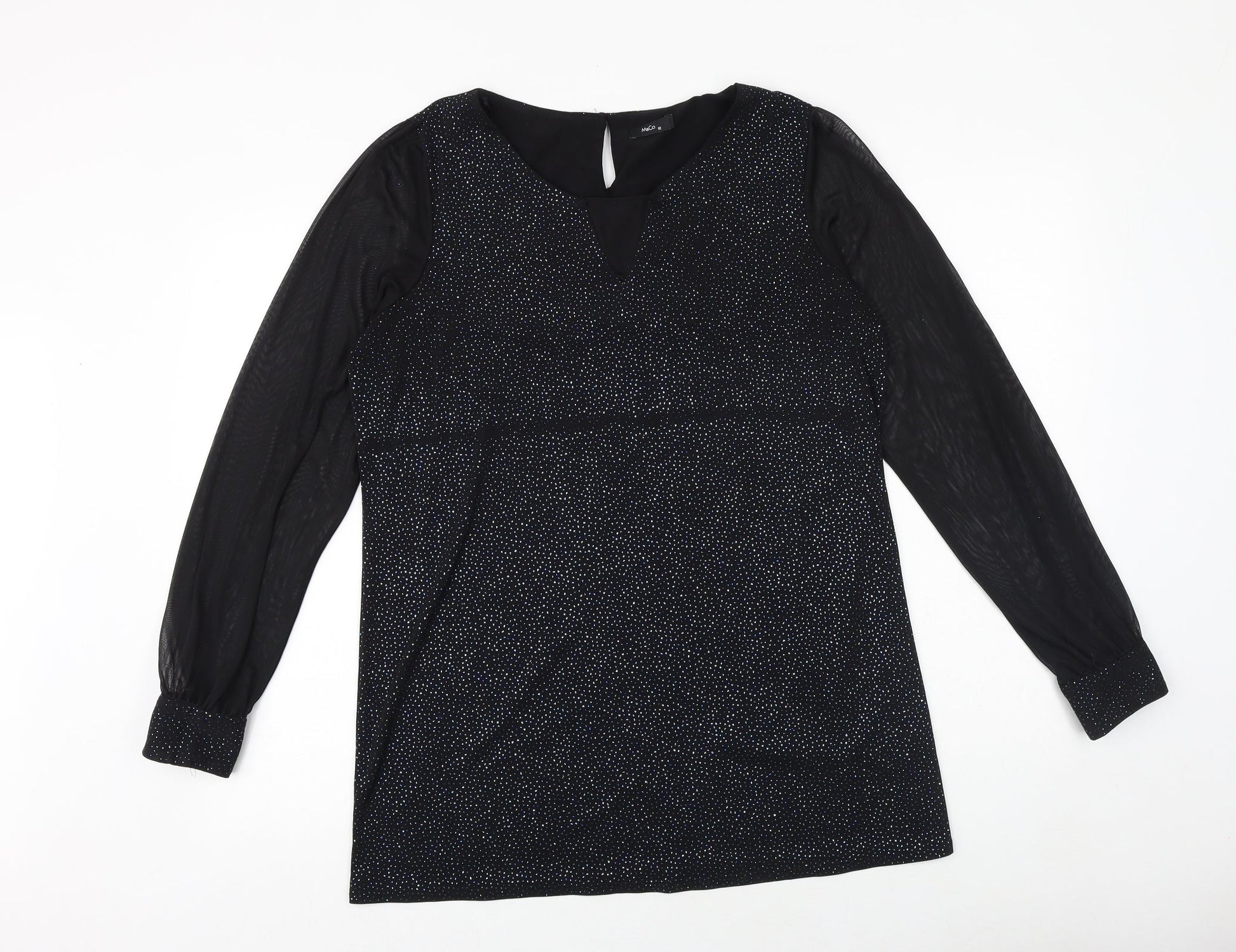 M&Co Womens Black Polyester Basic Blouse Size 12 V-Neck