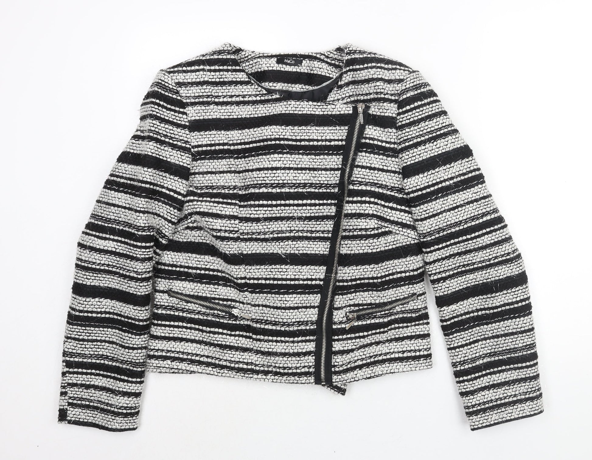 M&Co Womens Black Striped Jacket Size 14 Zip - Tassle Detail