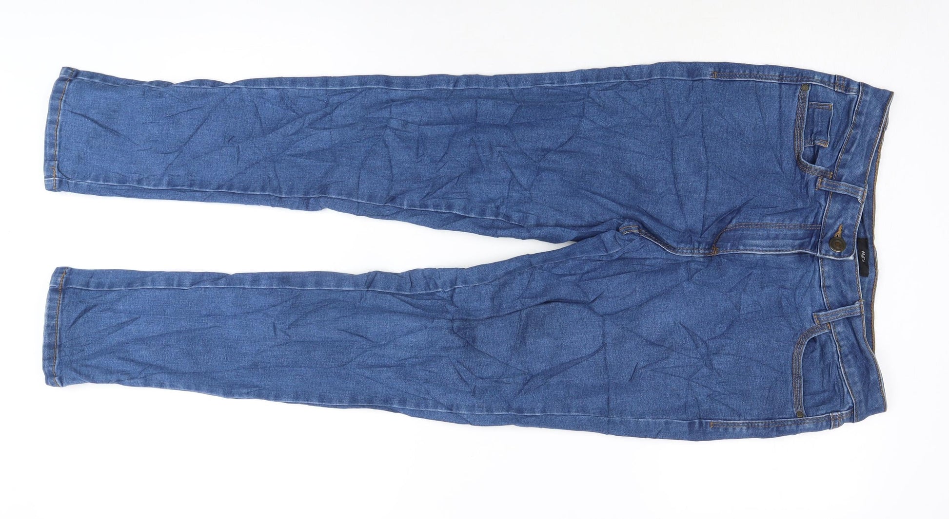M&Co Womens Blue Cotton Blend Straight Jeans Size 10 L27 in Regular Zip