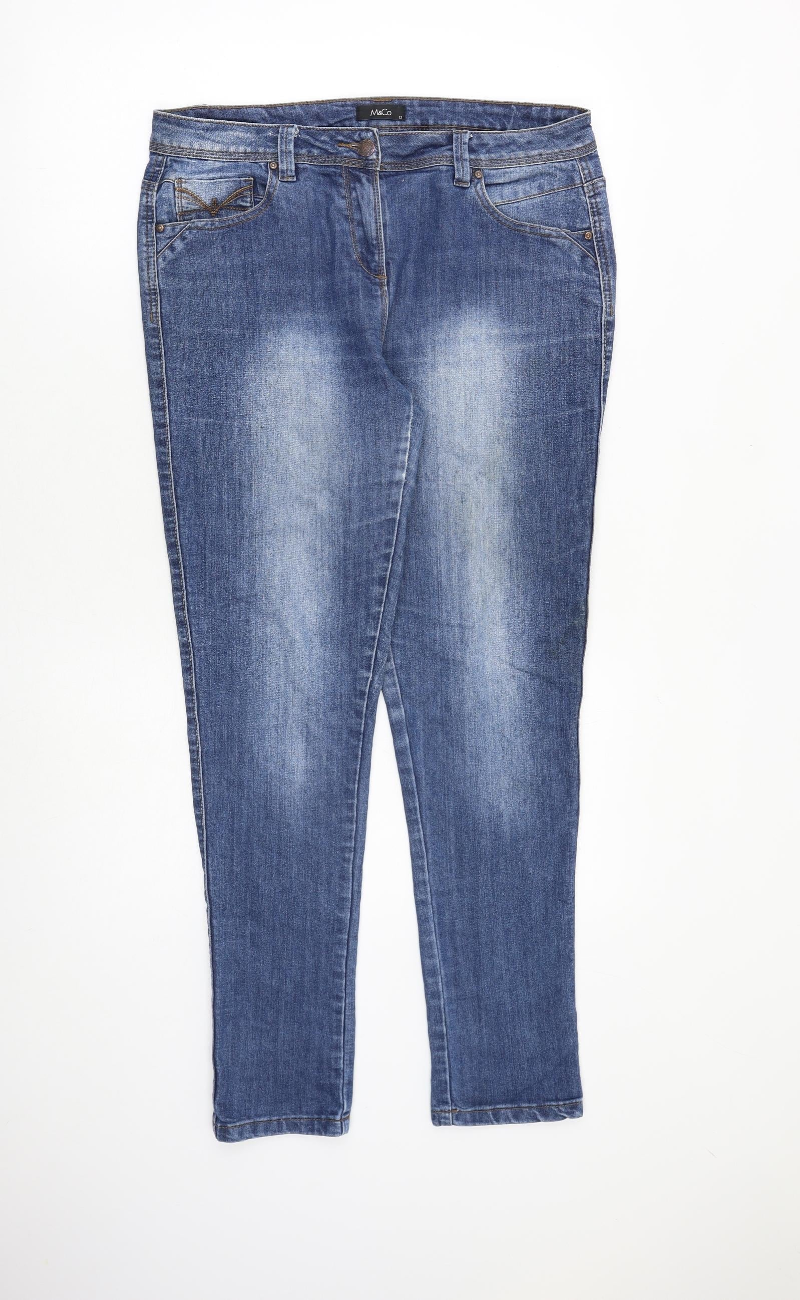 M&Co Womens Blue Cotton Skinny Jeans Size 12 L29 in Regular Zip