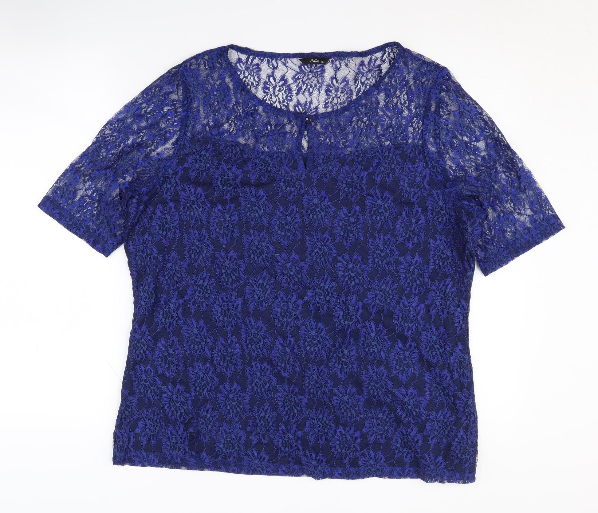 M&Co Women's Blue Floral Lace Blouse Size 20