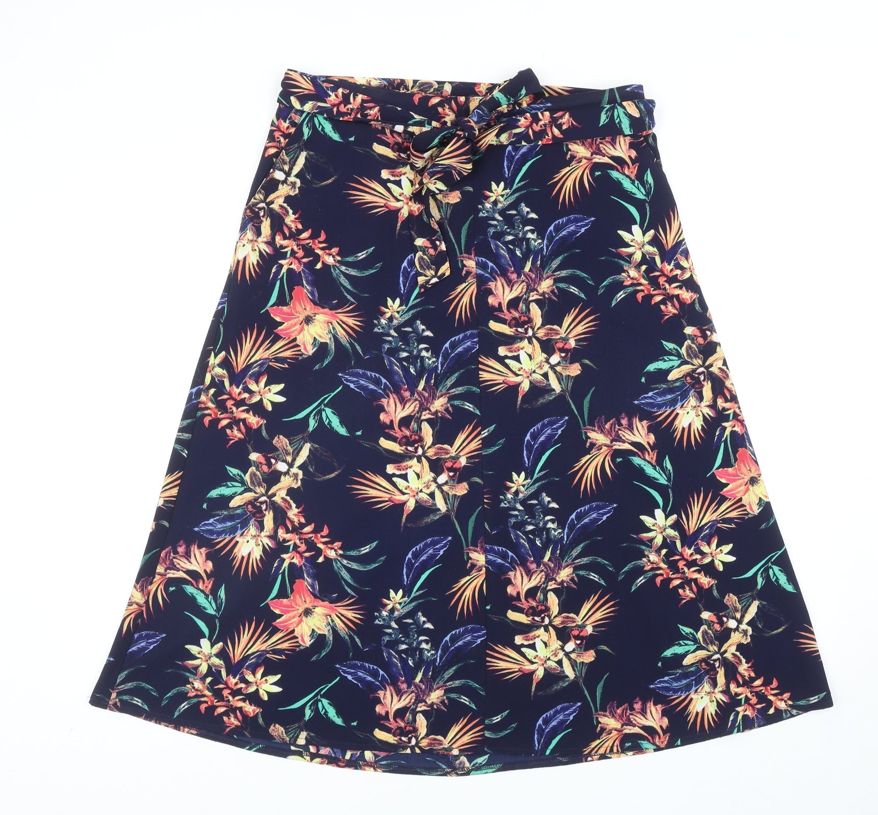 M&Co Womens Blue Floral Polyester Swing Skirt Size 12 Tie