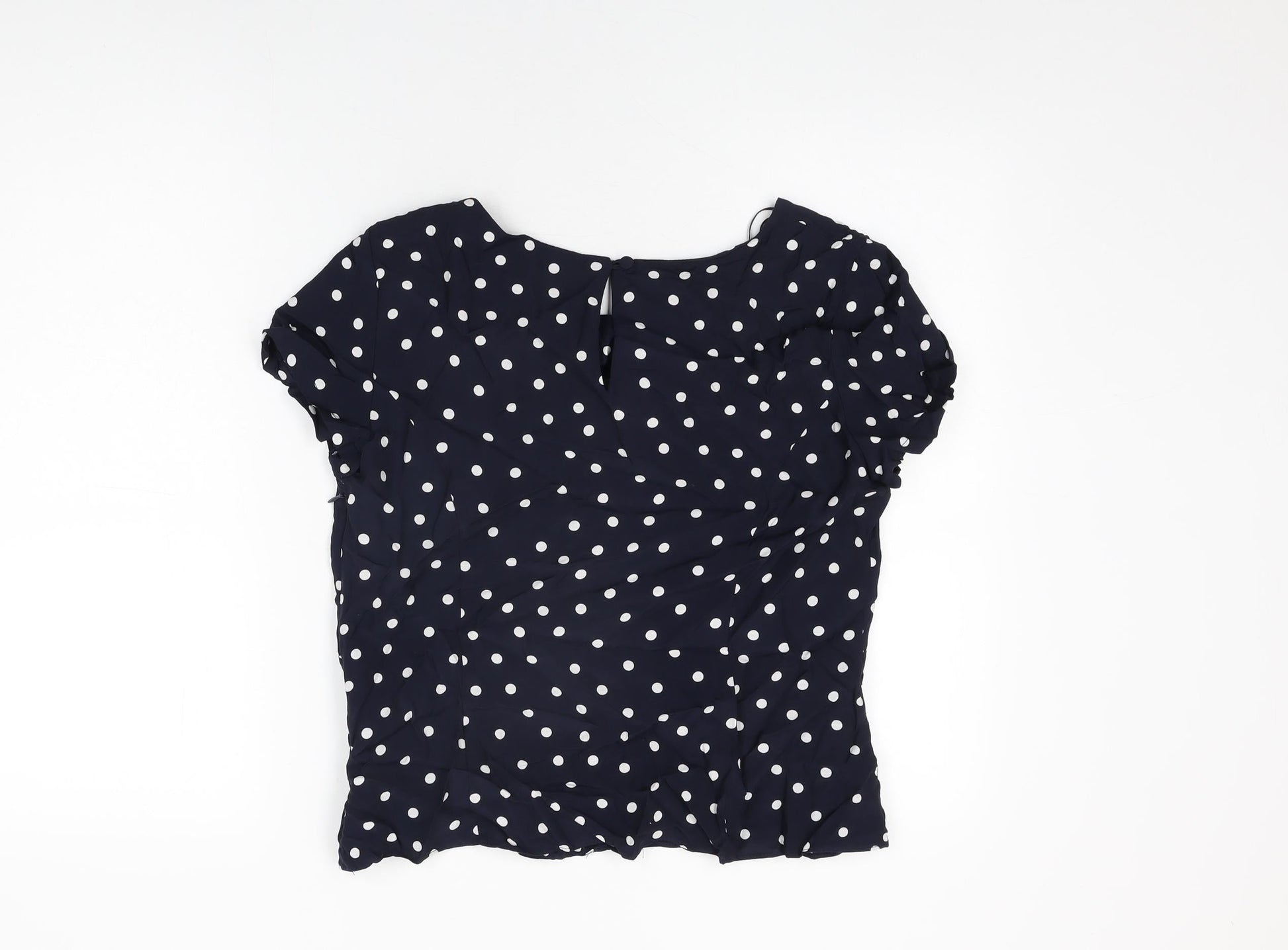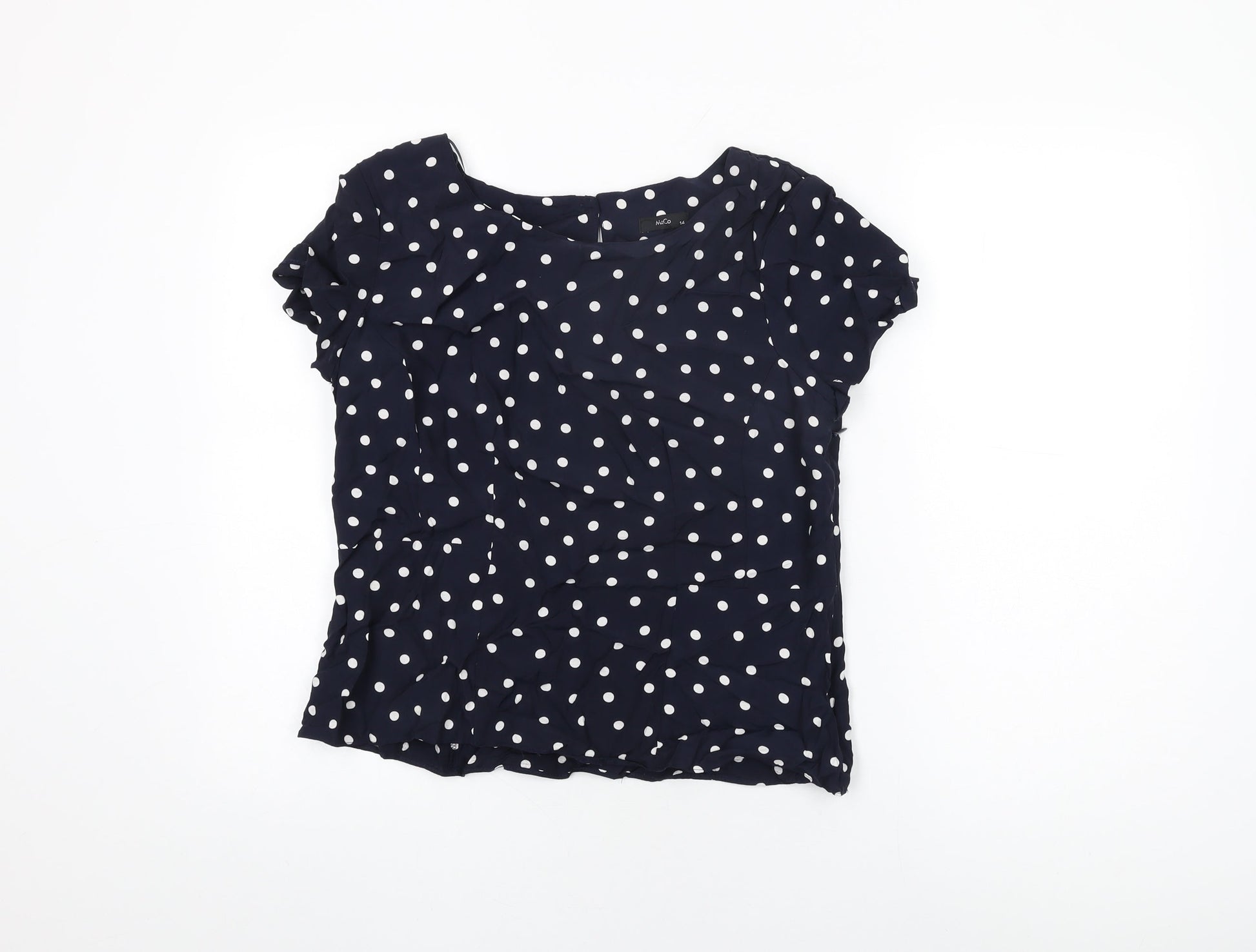 M&Co Womens Blue Polka Dot Viscose Basic T-Shirt Size 14 Round Neck