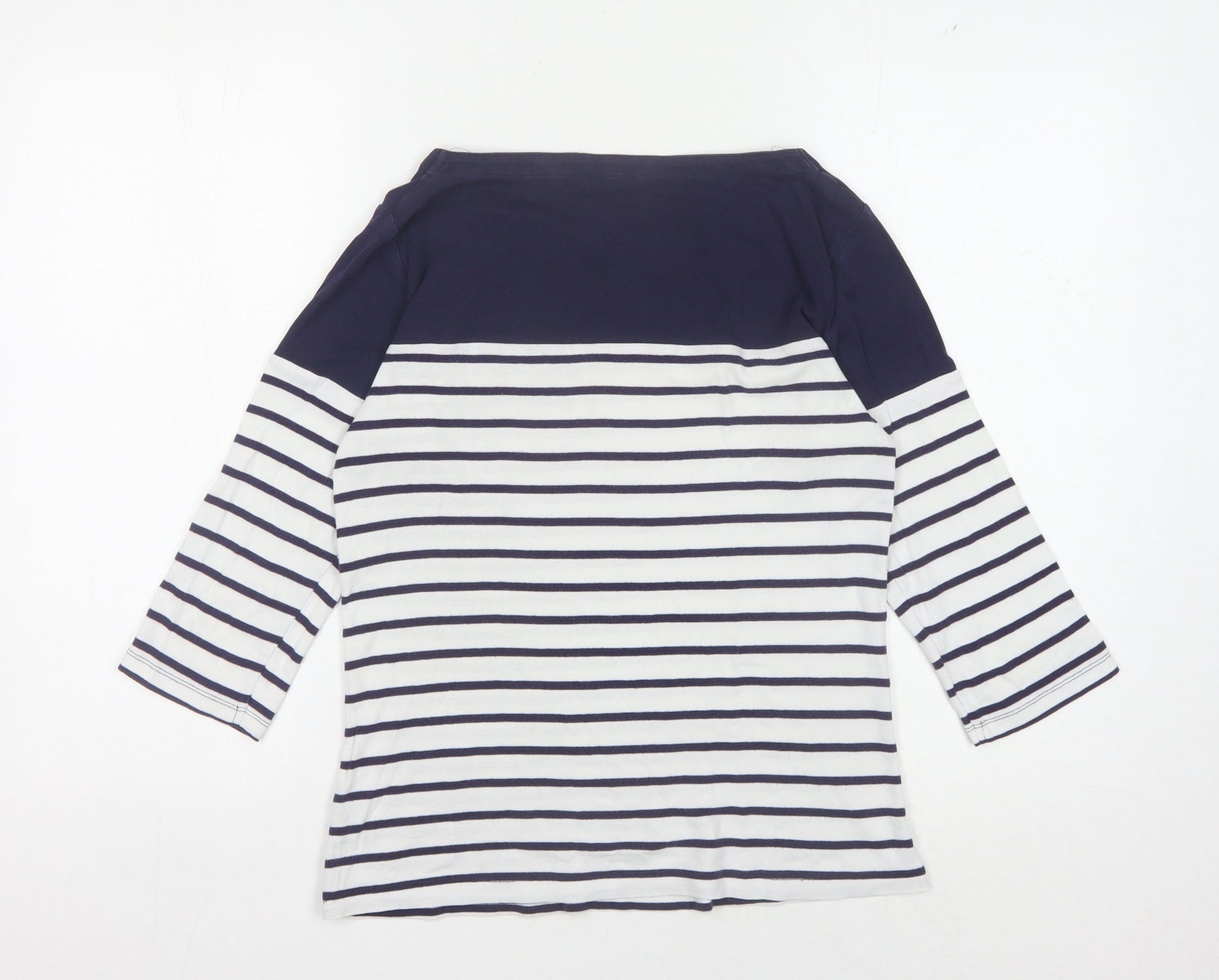 M&Co Women's Blue Striped Boat Neck T-Shirt Size 10