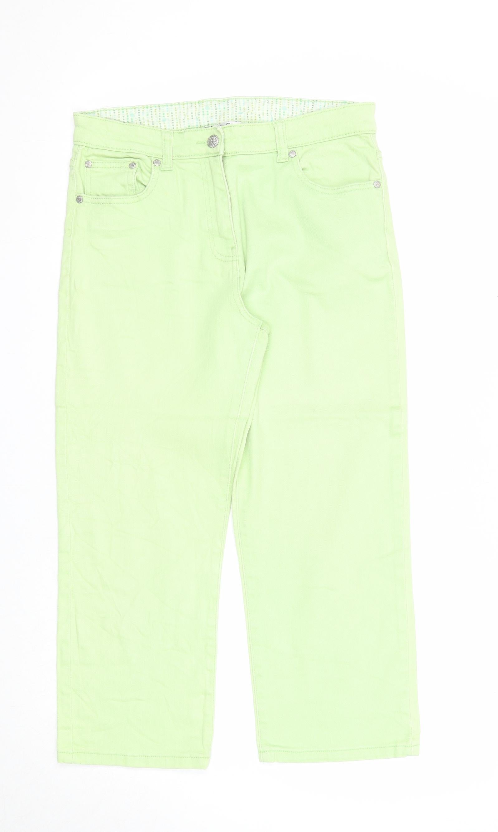 M&Co Womens Green Cotton Straight Jeans Size 12 Regular Zip